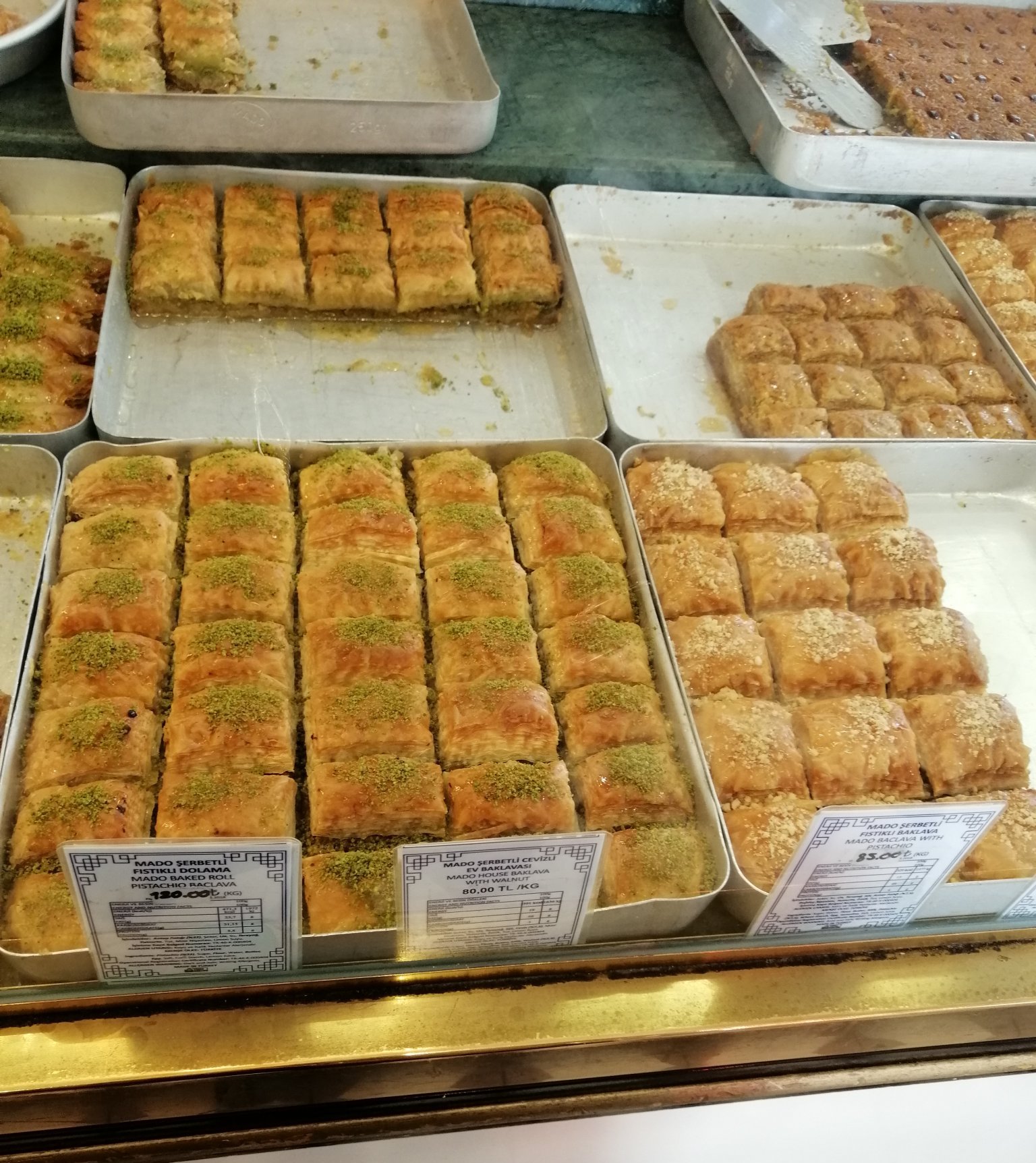 Тези бадемови курабийки така и не ми харесаха. Пробвах в магазинчето срещу Ondo, точно до любимото ми Tatlı Konağı. Впрочем, говорейки си за места, където ходят местните, вътре в сладкарничката се чува предимно турска реч. Хапваме и в места тип локантасъ за основно. Освен дюнерите на Белята, разбира се.