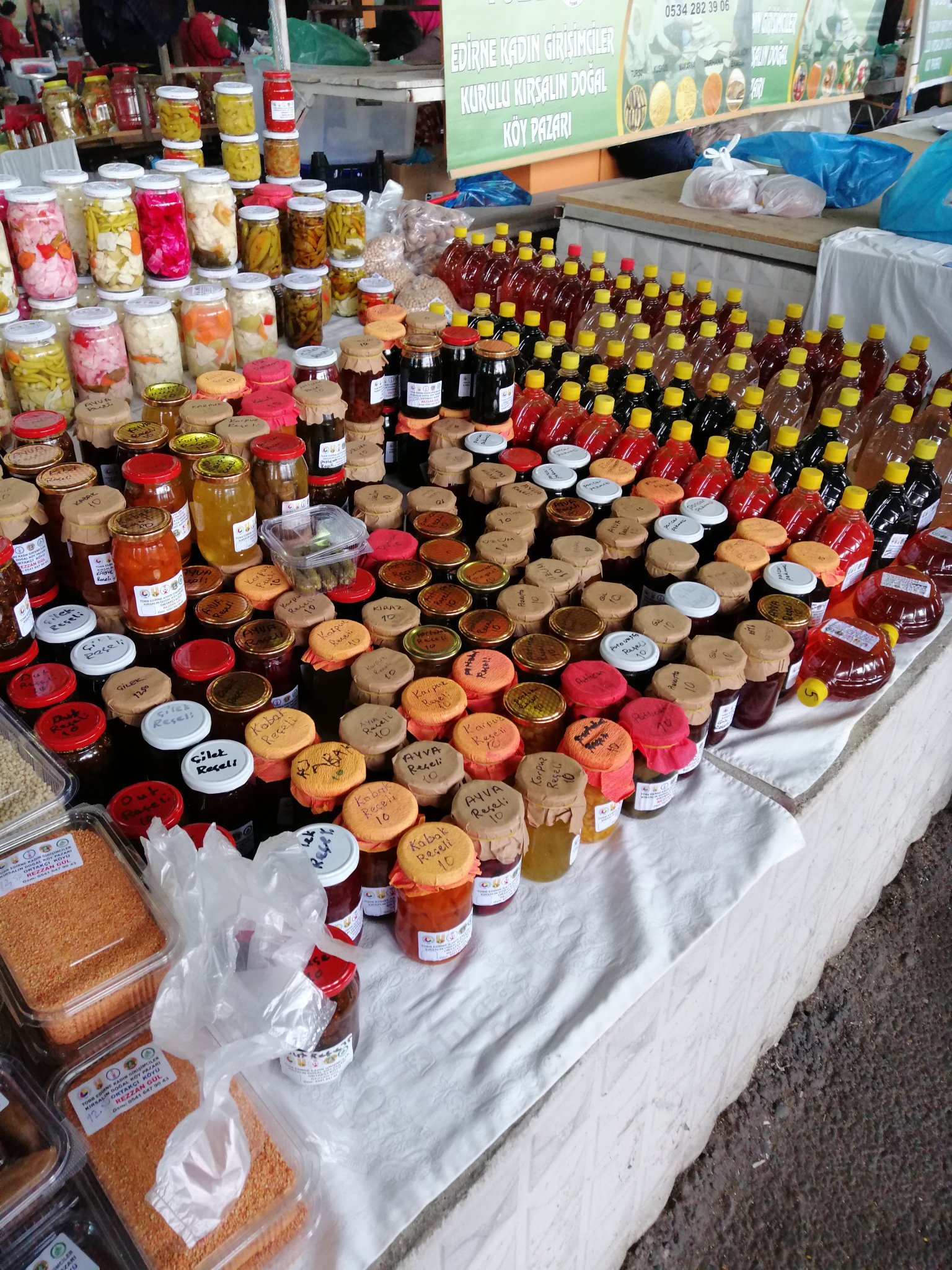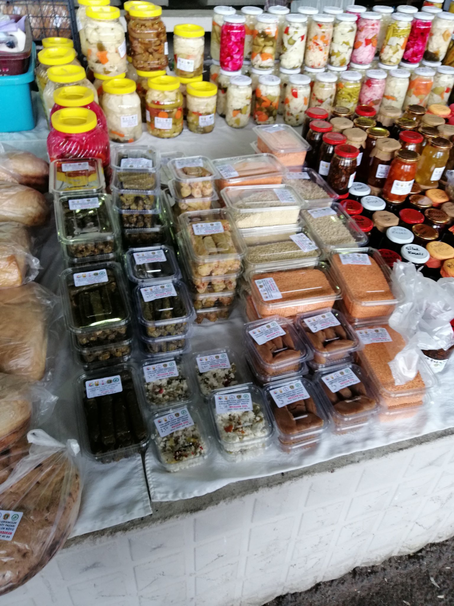 Много се радвам че посетих синия пазар за домашни продукти. Пак искам да отидем. Купихме сарми, извара, сладки, опитахме страхотни мекици, взехме си масленки какаови с шам фъстък, аз кекс и сладкиш с шоколад и бял крем, както и пурички с ябълка. Heart Eyes Всичко е супер. Направих доста снимки, но още не мога да отпочина. Млечни продукти, бобови, кус кус и макарони, тиква, мед и разни сладка с рачели, правеха гьозлеми и мекици, палачинки май също ядяха някои на маси, доста баници със сирене и спанак, едни интересни като рулца с панировка и зеленчуци, сарми лозови и зелеви, зехтин, кексове, баклави, масленки, пурички с ябълки, сютляш, домашно тирамису с тортен крем, маков сладкиш, реванета и какво ли още не. То си струва да дойдете и купите от тук вместо от сладкарница някои неща, защото са на 1/3 от цената.