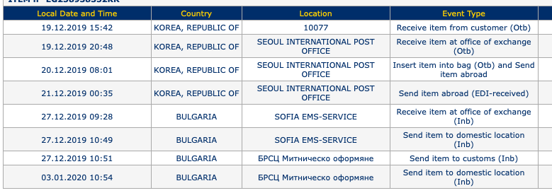 На 30.12.19 г. получих смс от БГ пощи за пратка, подлежаща на митническо оформяне, считано от 27.12.19. Днес изпратих по имейл всички документи.
