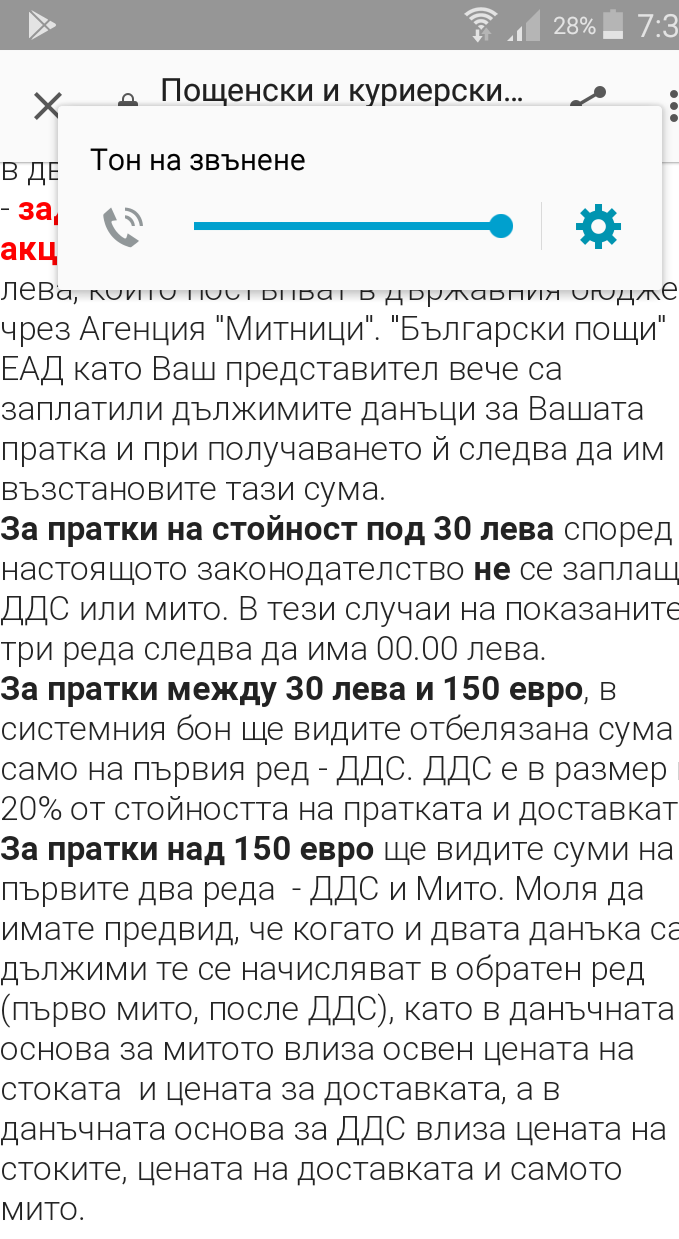 Процедурите за освобождаване на пратки от митница включват различни стъпки в зависимост от стойността на пратката. За пощенски пратки до 30 лв (15 евро) не се обмитяват и се получават директно от пощенския клон по адрес, освен ако не са задържани за митнически контрол. За пратки над 30 лв се дължи ДДС и евентуално мито, а за тези над 300 лв - мито (ако е дължимо) + ДДС. Куриерските пратки почти винаги се задържат на митница. Може да се използва и услугата на митнически представител, който освобождава пратката вместо получателя срещу заплащане. Куриерските пратки над 30 USD (15 евро) трябва да преминат през митница, където се попълва електронна митническа декларация и се изисква ЕОРИ номер. За пратки до 300 USD се дължи само ДДС, а за по-големи суми - мито (ако е приложимо) и ДДС. Като алтернатива може да се използва услугата на куриерска фирма или друг митнически представител за освобождаване на пратката вместо получателя. При освобождаване на пратка от митницата трябва да платиш ДДС (20% от стойността на поръчката), митническа декларация, пощенска такса и доставка до твоя пощенски клон. За пратки над определена стойност може да се дължи и мито. Процедурата включва попълване на митнически документи, представяне на банково извлечение или декларация за плащане и евентуално упълномощаване на пощата да ви представлява. При освобождаване на пратка от митницата трябва да платиш ДДС (20% от стойността на поръчката), митническа декларация, пощенска такса и доставка до твоя пощенски клон. За пратки над определена стойност може да се дължи и мито. Процедурата включва попълване на митнически документи, представяне на банково извлечение или декларация за плащане и евентуално упълномощаване на пощата да ви представлява. При освобождаване на пратка от митницата трябва да платиш ДДС (20% от стойността на поръчката), митническа декларация, пощенска такса и доставка до твоя пощенски клон. За пратки над определена стойност може да се дължи и мито. Процедурата включва попълване на митнически документи, представяне на банково извлечение или декларация за плащане и евентуално упълномощаване на пощата да ви представлява. При освобождаване на пратка от митницата трябва да платиш ДДС (20% от стойността на поръчката), митническа декларация, пощенска такса и доставка до твоя пощенски клон. За пратки над определена стойност може да се дължи и мито. Процедурата включва попълване на митнически документи, представяне на банково извлечение или декларация за плащане и евентуално упълномощаване на пощата да ви представлява. За пратки под 30 лв. разходите са само 4,80 лв. и не е необходимо да попълвате декларация или да разполагате с КЕП и ЕОРИ номер. За по-големи суми може да се наложи попълване на декларация и разполагане с КЕП и ЕОРИ номер.