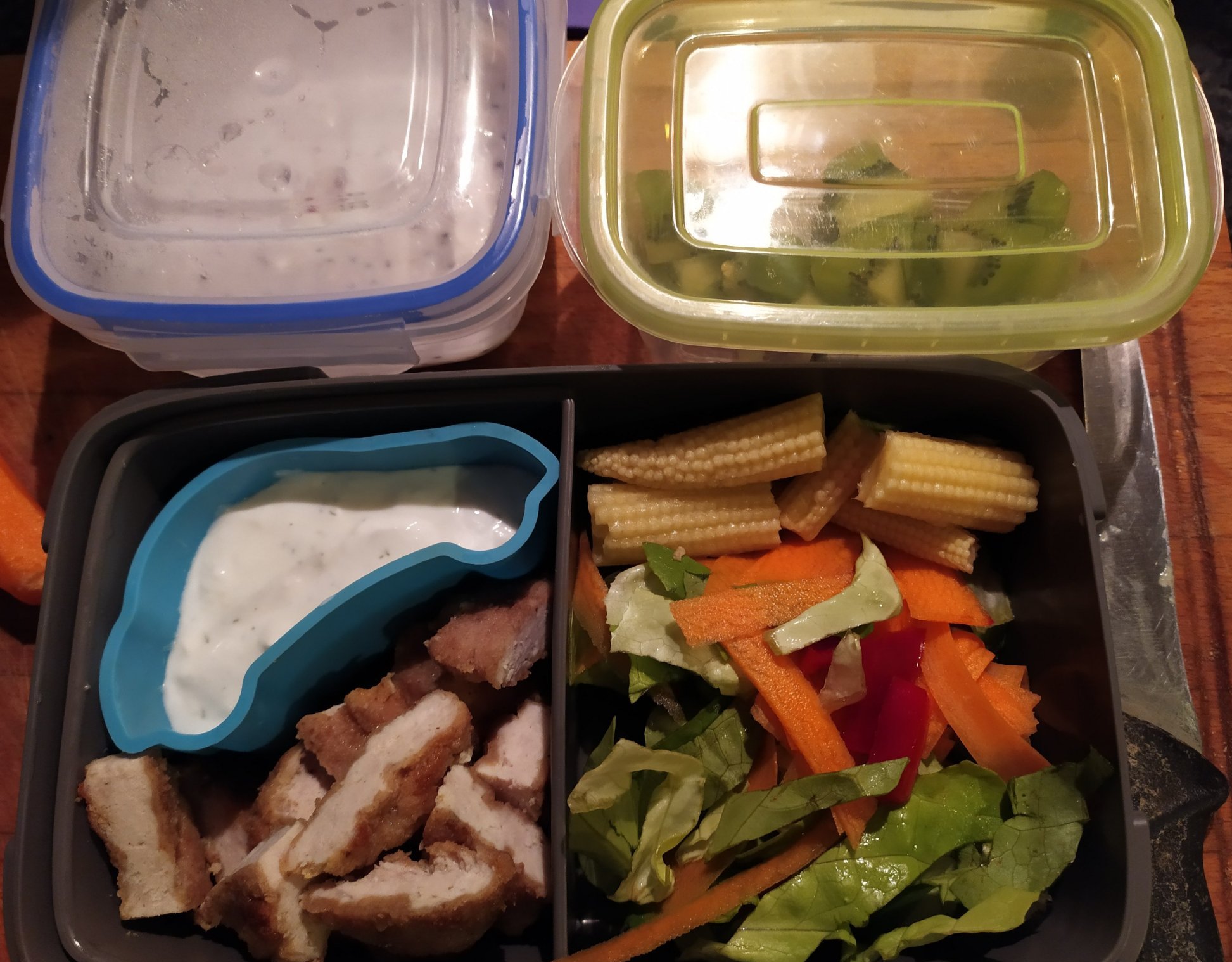 Вчера беше много натоварен ден и не успях да си изям обяда, затова остава за днес ( в офиса имаме кухня с хладилник).
