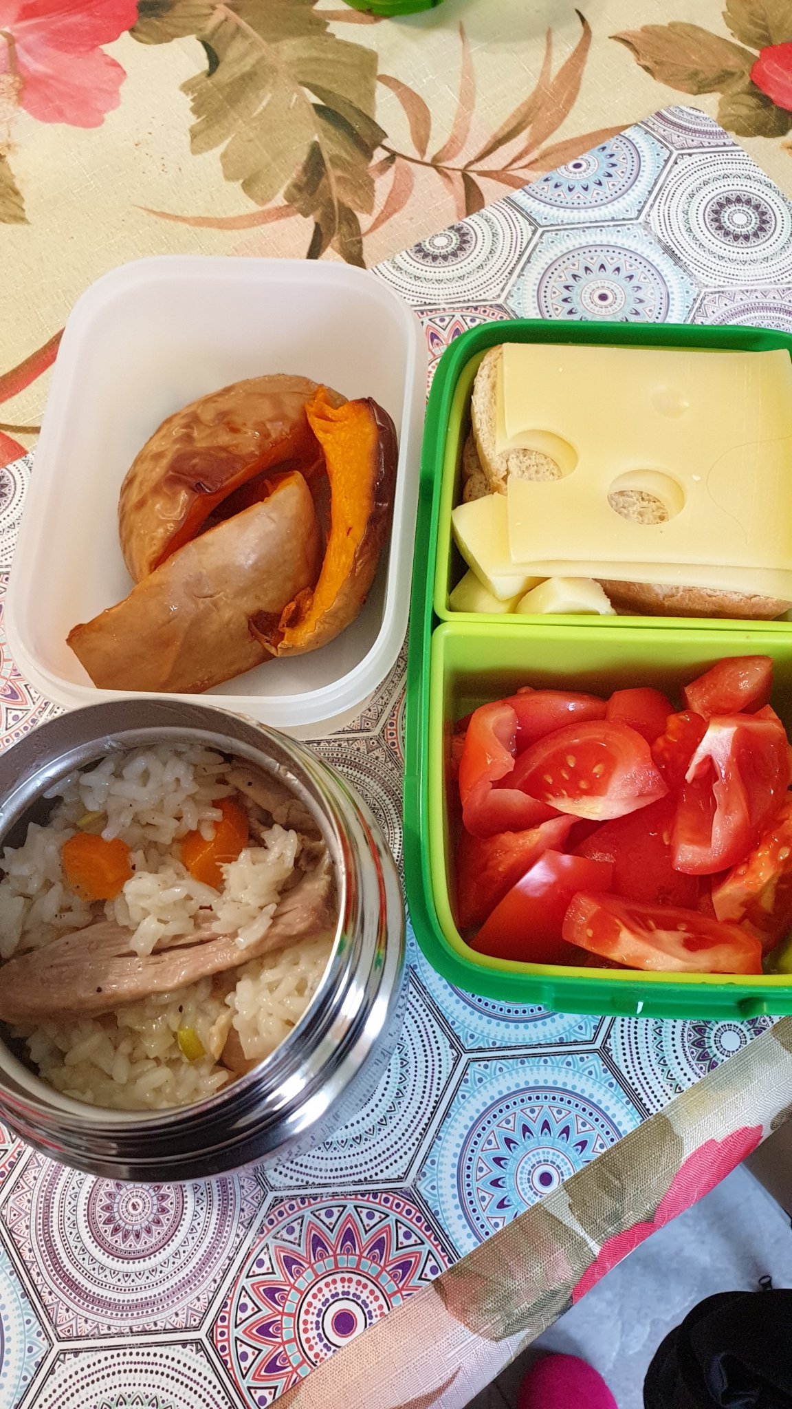 Потребителите споделят различни методи за запазване на топлината на храната в кутии за храна. Някои използват термоси, които поддържат ястието топло до обяд, докато други предпочитат пластмасови контейнери за по-твърда храна. Освен това има идеи за приготвяне на храна, която може да се консумира на стайна температура, като печено месо, кюфтета, омлети, зеленчуци, плодове и десерти.