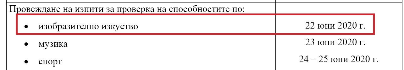 Проверка на способностите по рисуване за училищата към МОН е на 22 юни тази година?