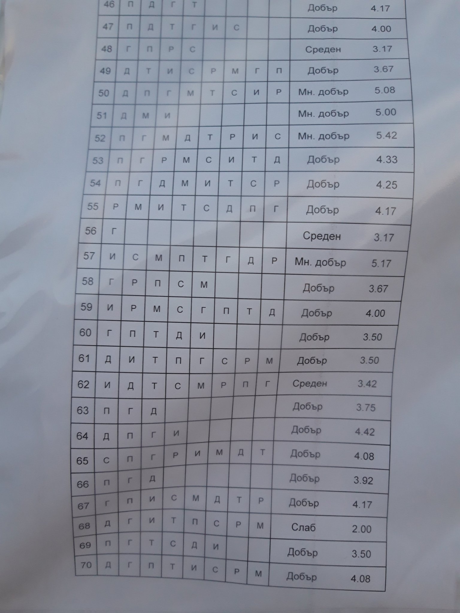 Не искам да ви отчайвам, ама от това, което се вижда на тази една страничка оценки, ми се струва, че и тази година оценките са повече ниски.  Не си спомням миналата ли или по-миналата година беше така. Пак беше лесна постановка и пак накрая резултатите не бяха весели
