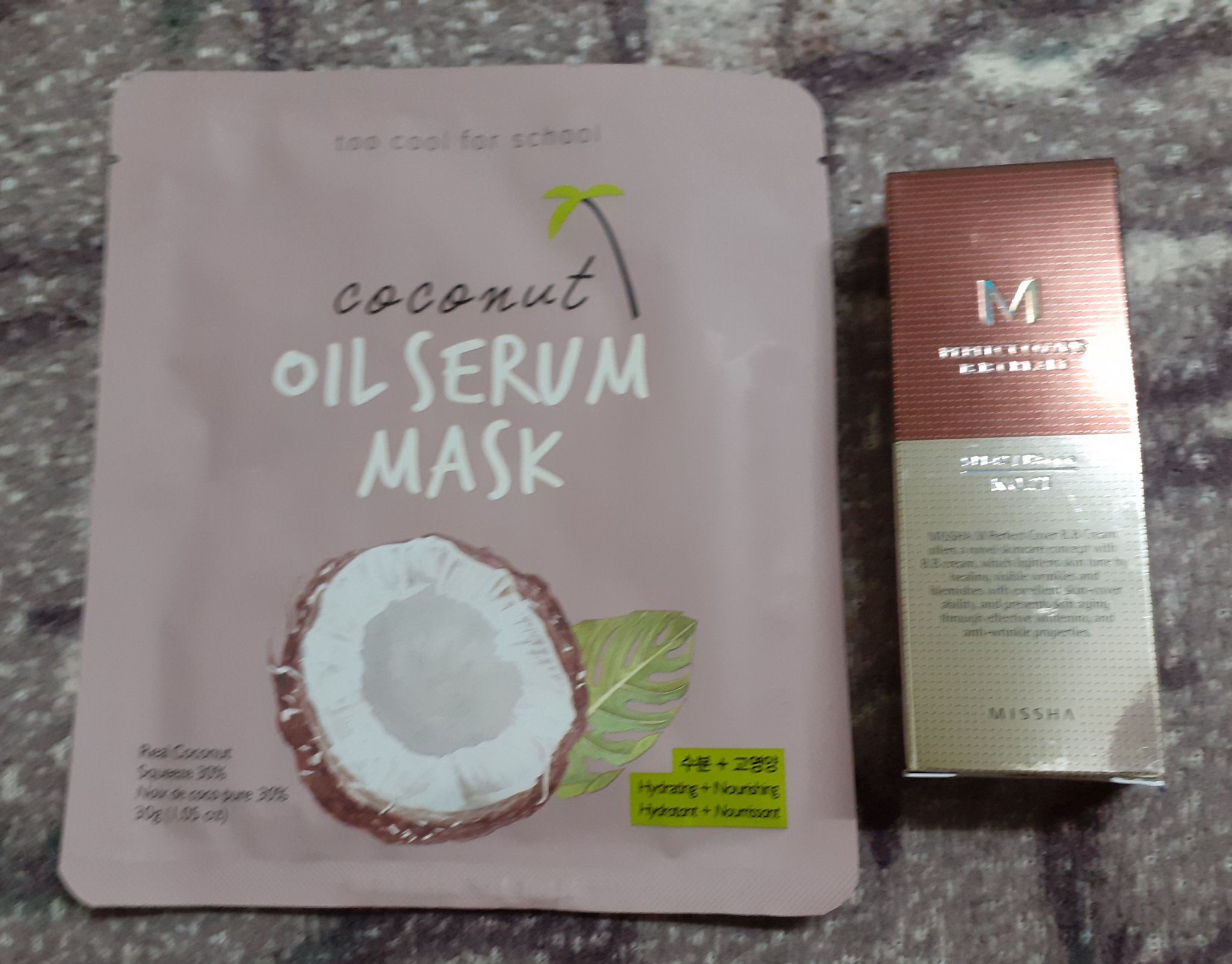 Корейска шийт маска с кокосово масло и кокосова вода и ББ крема на Миша в малката разфасовка.