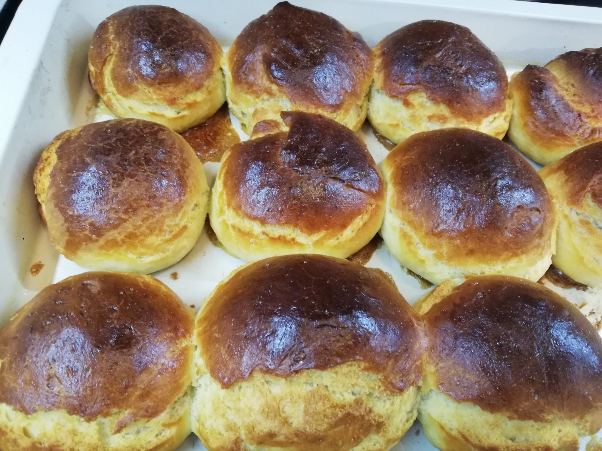 Имам рецептата от майка ми, но снощи я видоизмених. Слагам ги в купа, покривам с кърпа и мушкам купата в найлонова торбичка. Така остават меки и на следващия ден. Плънката е смесени течен шоколад и фъстъчено масло. Ще опитам с парче млечен шоколад или локум, ама следващия път.