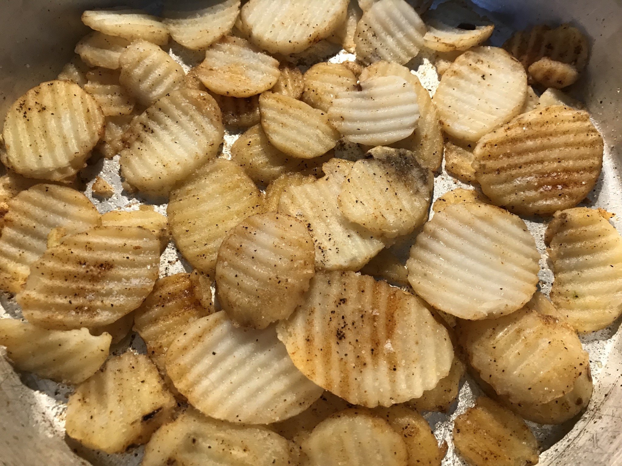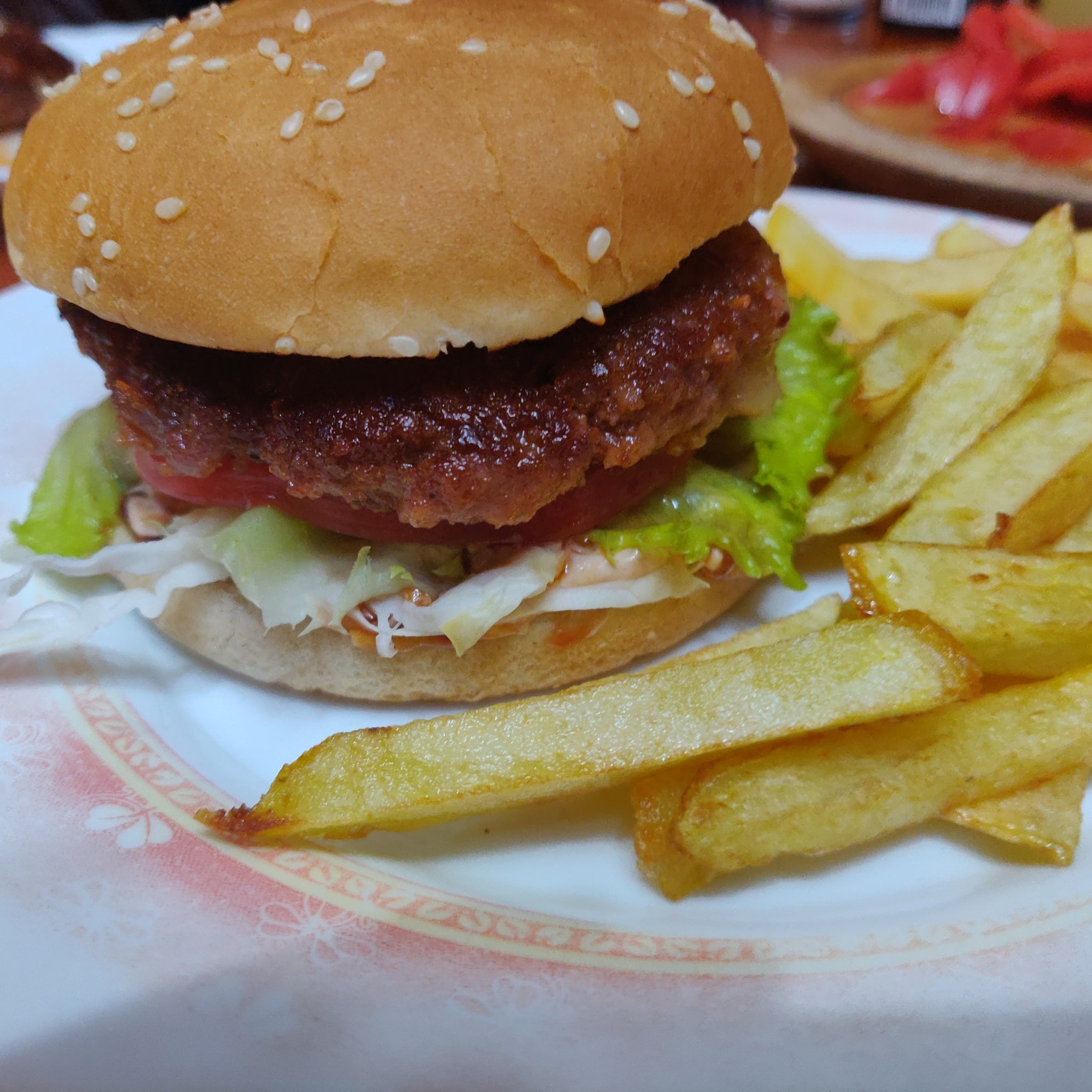 Кюфтета на тиган от мляно свинско месо и печени картофи.