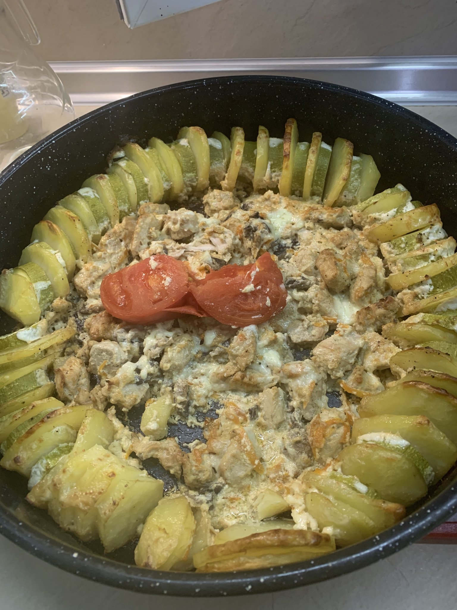 И аз съм на вълна запеканка ,е вярно ,че тавата ми се оказа малко голяма и плънката не ми стигна ,но все пак и вкусно като идея