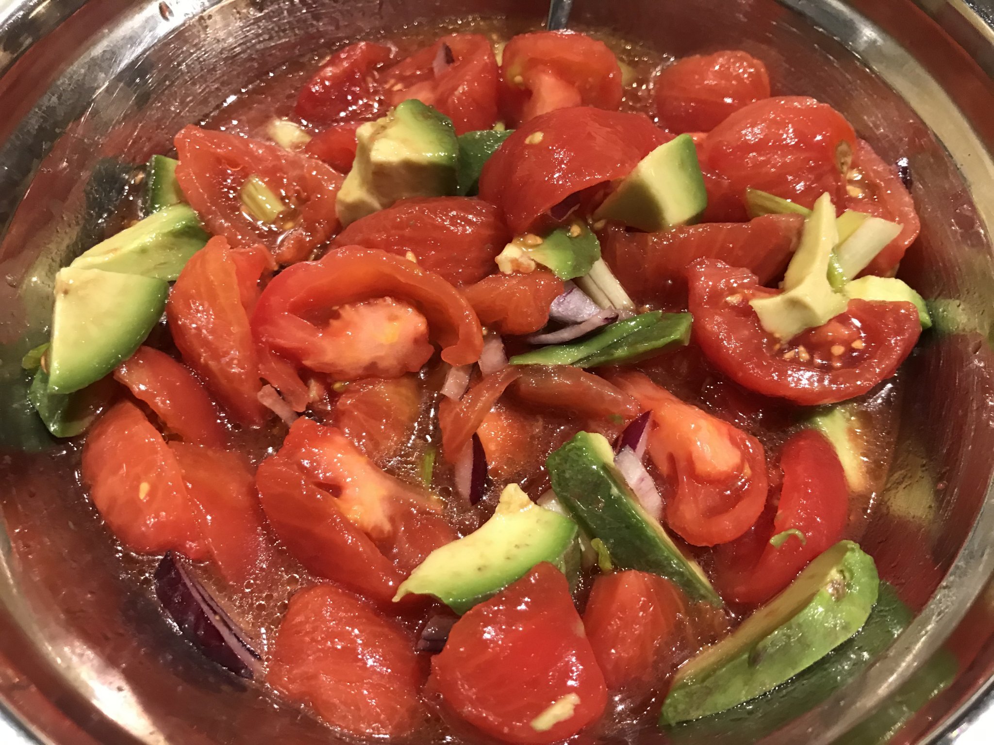 Салата с черен боб, спанак, чери домати, червен лук, яйца, гриловани ябълки и орехи с мед с балсамово-горчичен дресинг;