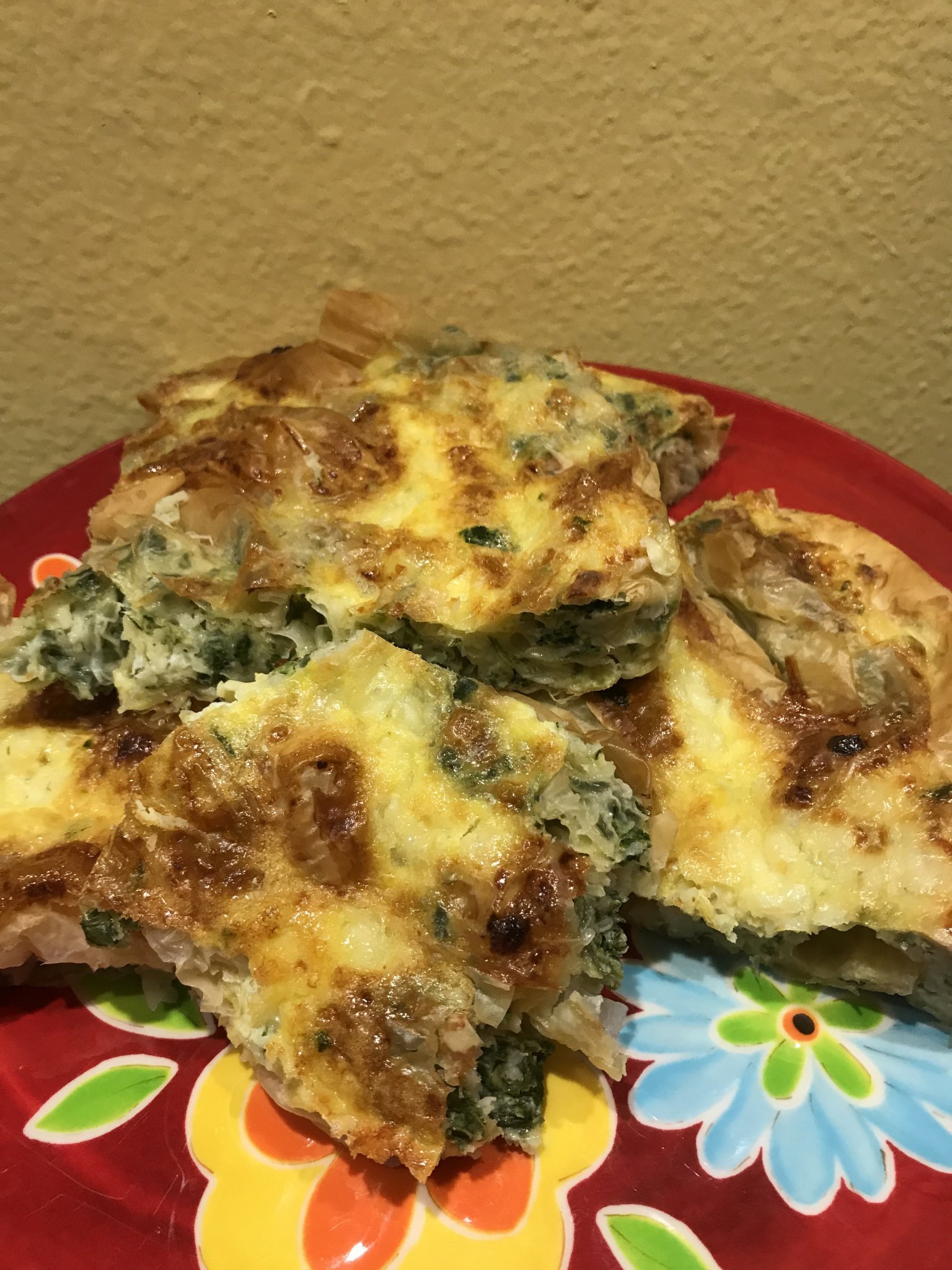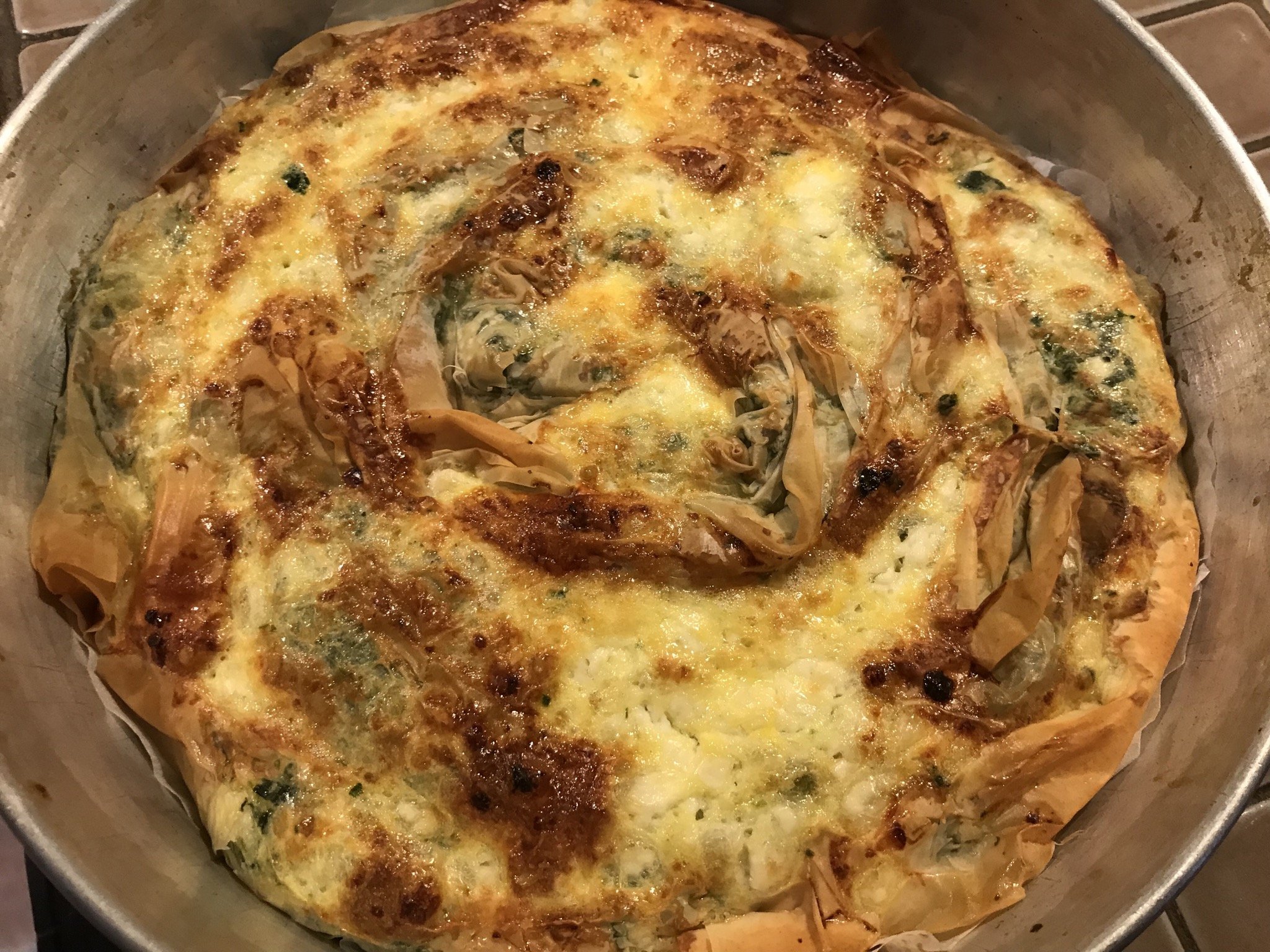 Баница със зелении и котидж сирене (в микса имаше и рукола и има малко горчива жилка 😫😫😫).