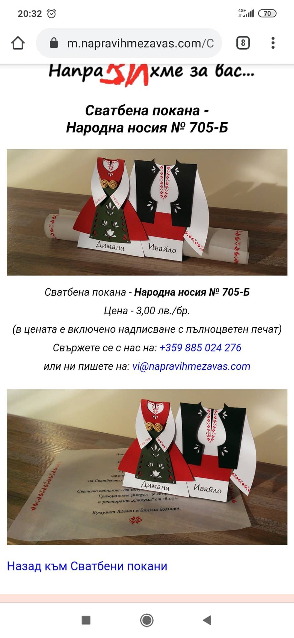 Allegra, поканите поръчахме от Elly's Art & Handmade. Имат фейсбук страница. Избрахме стъклени покани за родителите и кумовете, доволни сме от качеството и цената.