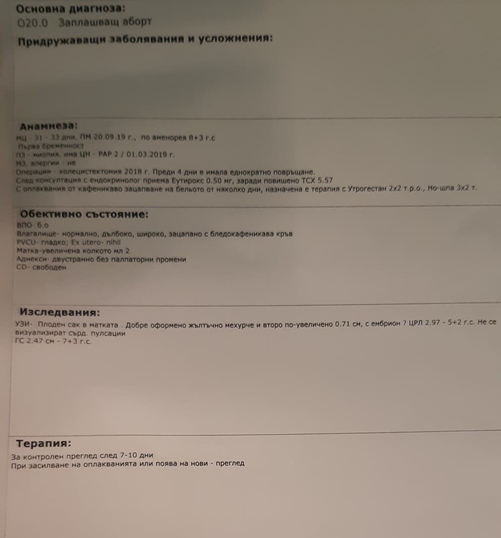 Ще ви приложа снимки от ехографа и от болничния лист, за да прочетете и ако можете да хвърлите някаква яснота, че вече съвсем се шашнах.