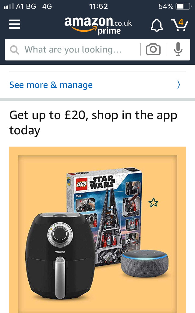 Дойде ми съобщение от Амазон,че ако поръчам над 200 паунда ще ми върнат 20 но само днес и само от App.,обаче затрих съобщението и не разбрах как става.Наясно ли сте?
