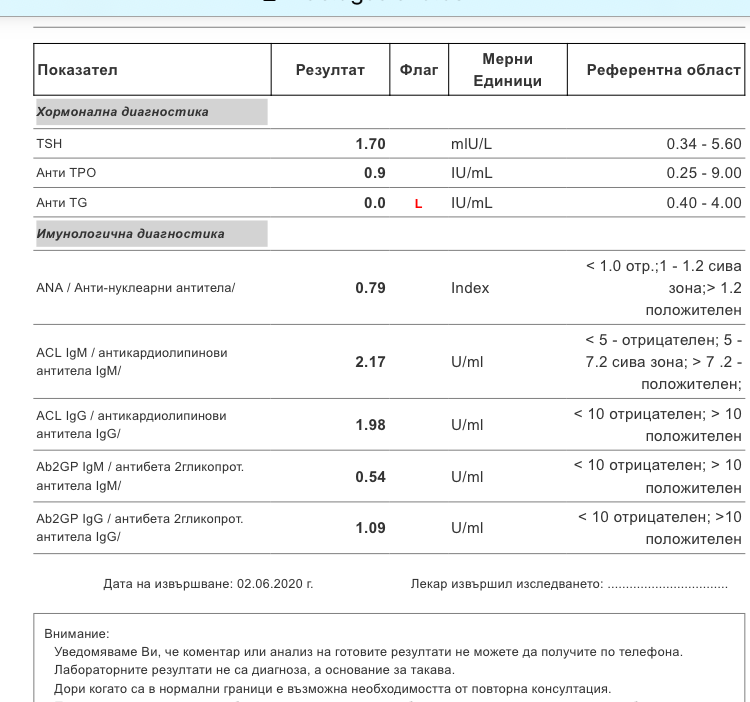 На 28 години съм, имам редовна менструация, просто е на 31-35 дни, след прегледа няколко пъти си правих тест за овулация и  беше положителен. Пия инофолика и капките вече почти 6 месеца, но миналия месец ми дойде на 43 ден, което не ми се е случвало от година, а този месец имам след овулация леко зацапване. Вече не знам да ходя ли отново на лекар, да търся друго мнение, аз ли се вманиачавам... Мислим да започнем опити към края на годината, но много се притеснявам да не изгубя това време вместо да се лекувам , ако ми има нещо в чакане. Прилагам последните изследвания от декември, които показах и на лекарите, но съм убедена, че Прогестерона беше преди овулация, защото 2 дни след изследването получих придърпване както при всяка моя овулация. При повторно изследване на TSH две седмици след първото резултата беше 2.24.