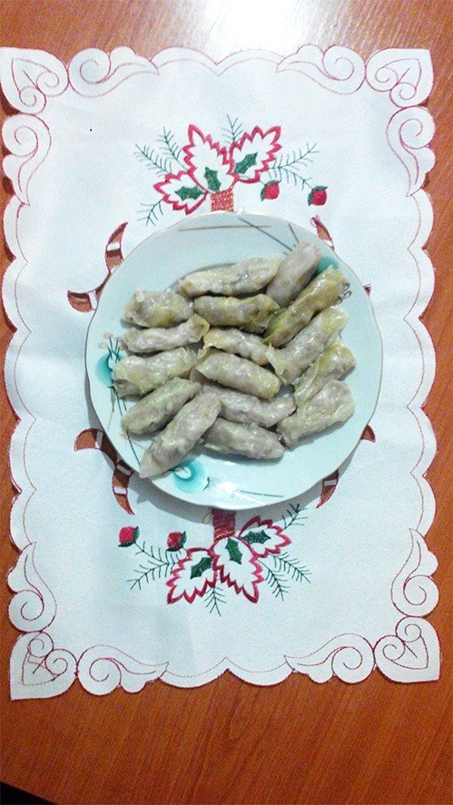 Увиват се малки сърмички от тази плънка в зелевите листа.