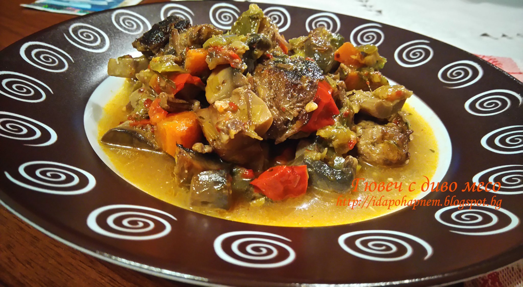 Почистете дивото от жилите и мазнината. Нарежете го на по-едри хапки. Накиснете го във вода, в която предварително сте добавили оцет /на 1л вода добавям около 1 1/2 ч.ч. оцет/. Оставете го да престои около 48 часа в хладилник. Извадете месото измийте го и го варете в чиста вода, в която е добавена ракията, около час и половина. Извадете полусвареното месо и го измийте добре.