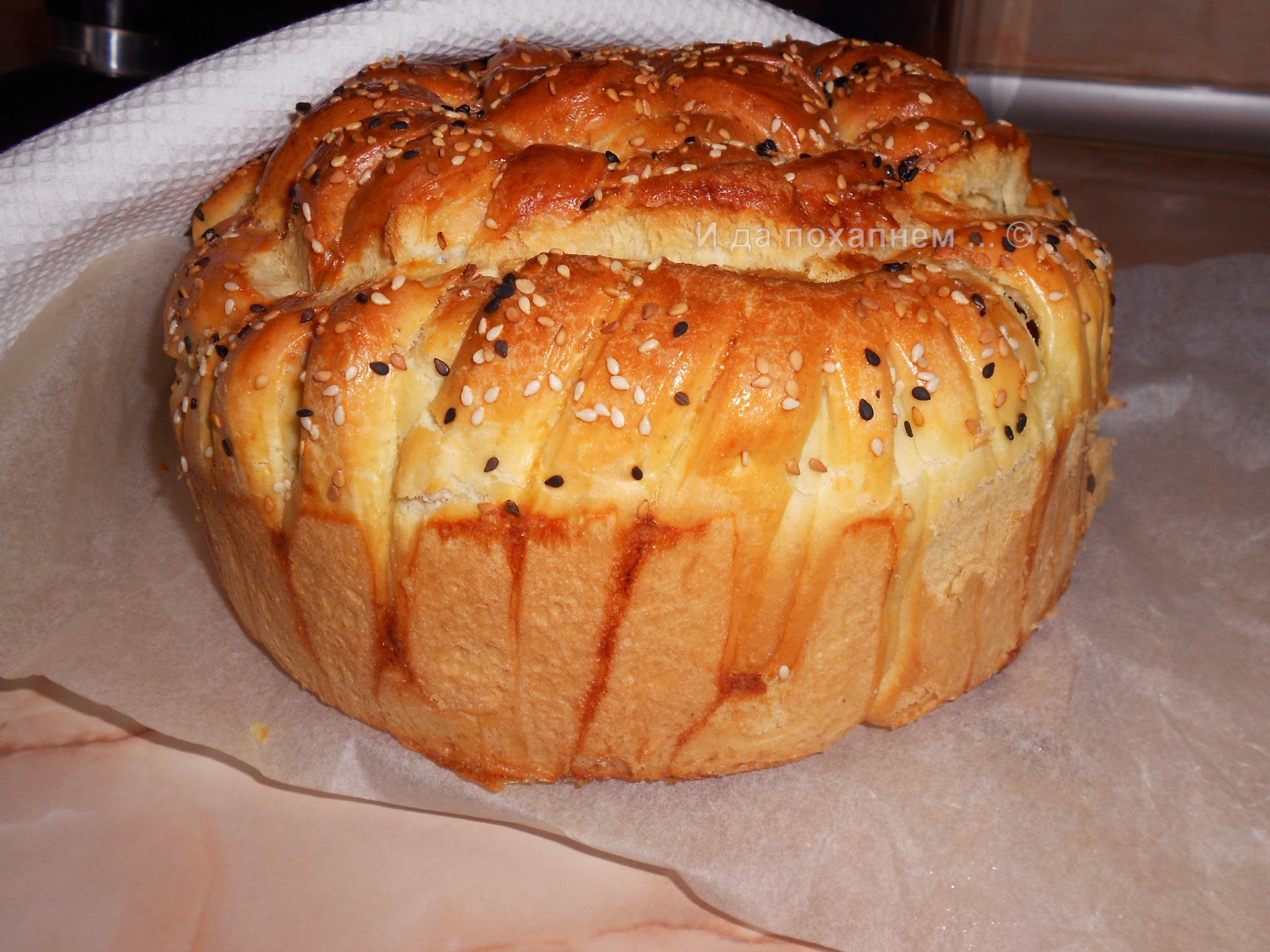 Разбийте яйцето. Прибавете при него ако имате останала мазнина. Намажете втасалия тутманик, поръсете обилно със сусам и печете в загряла на 170 градуса фурна до готовност.