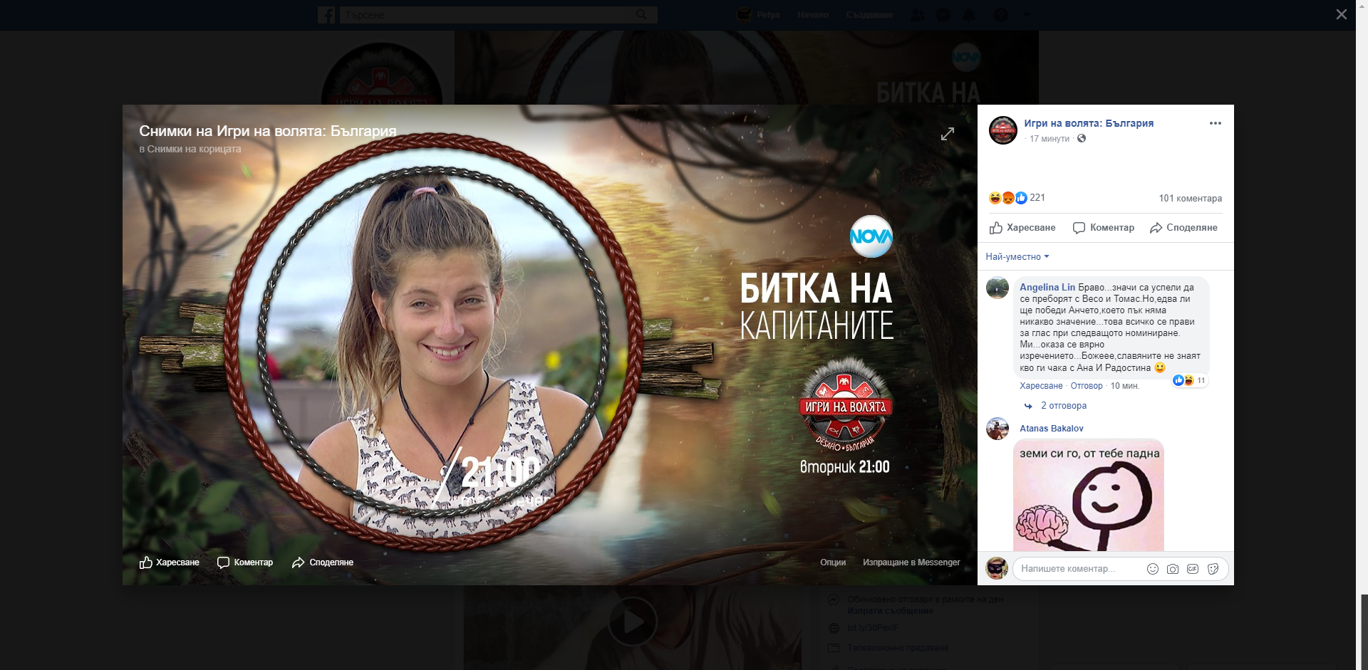 Аз пък много ще се радвам, че жена ще е капитан /макар и една от двете ми най-анти участнички/. Веселин как пък реши, че те на всяка цена трябва да отидат на капитанска битка, ЗАЩОТО!!! били от старите славяни?!? МОЛЯ?! Пък жените били гости в племето. А може би са гости и в играта? И май според него гостите трябва вече да си ходят? А?