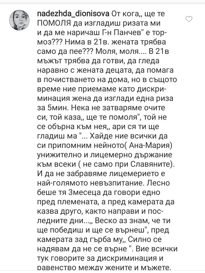 Коментари все от жени...по път съм и не мога да скрия имената им, но така или иначе са публични постове в инстаграм