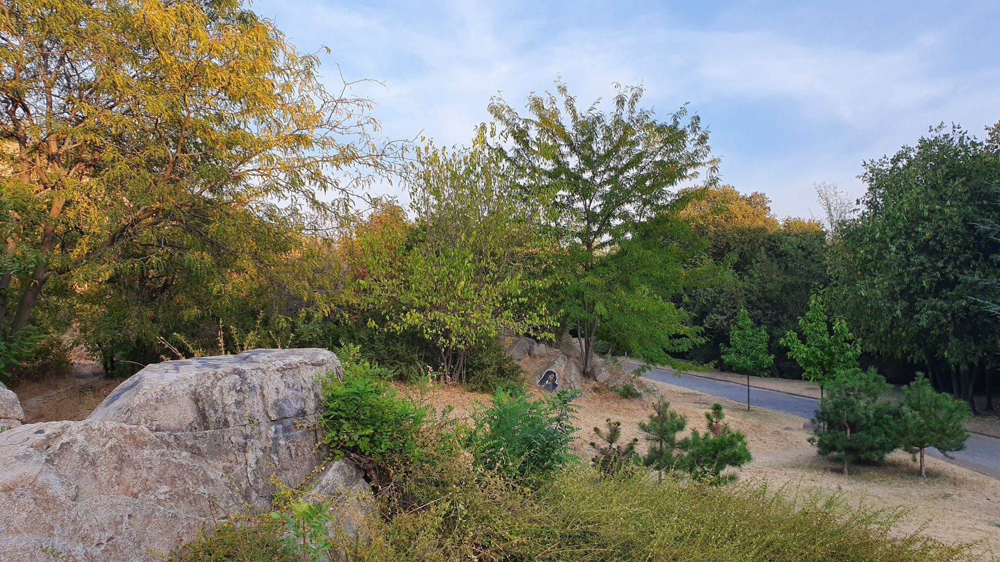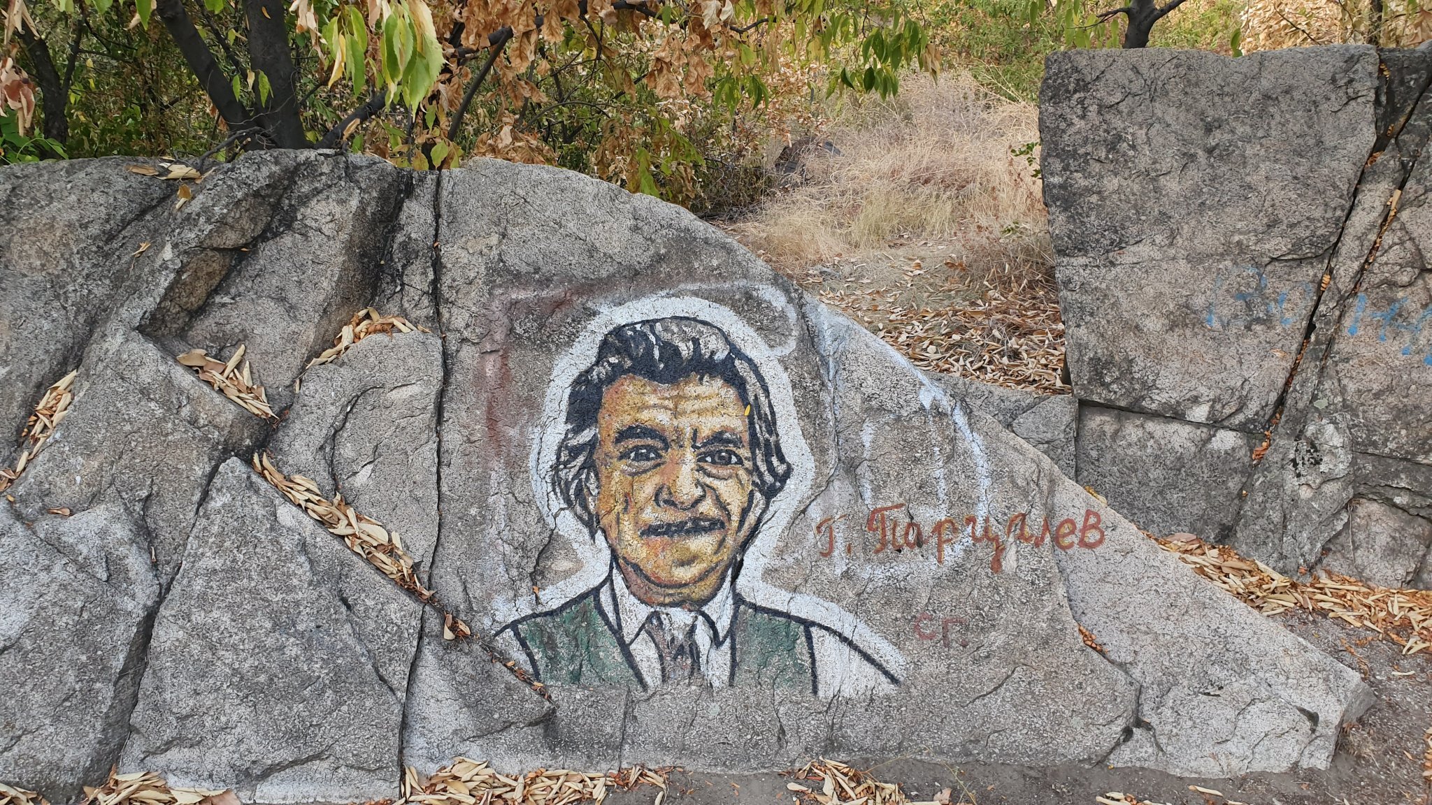 Сахат Тепе, познато още като наркоманското тепе. Един луд е изрисувал камънаците с грозни портрети.