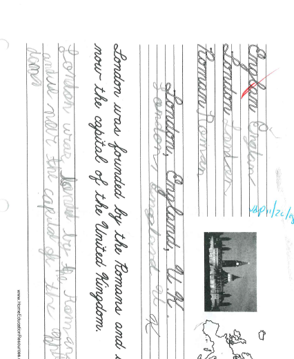 Тук трябва да го правят до 3 клас, и въобще не им е прибрано писането. Дори държаха за наклона. Сравнявам с български учебни тетрадки по краснопис. Там няма толкова извивки по буквите