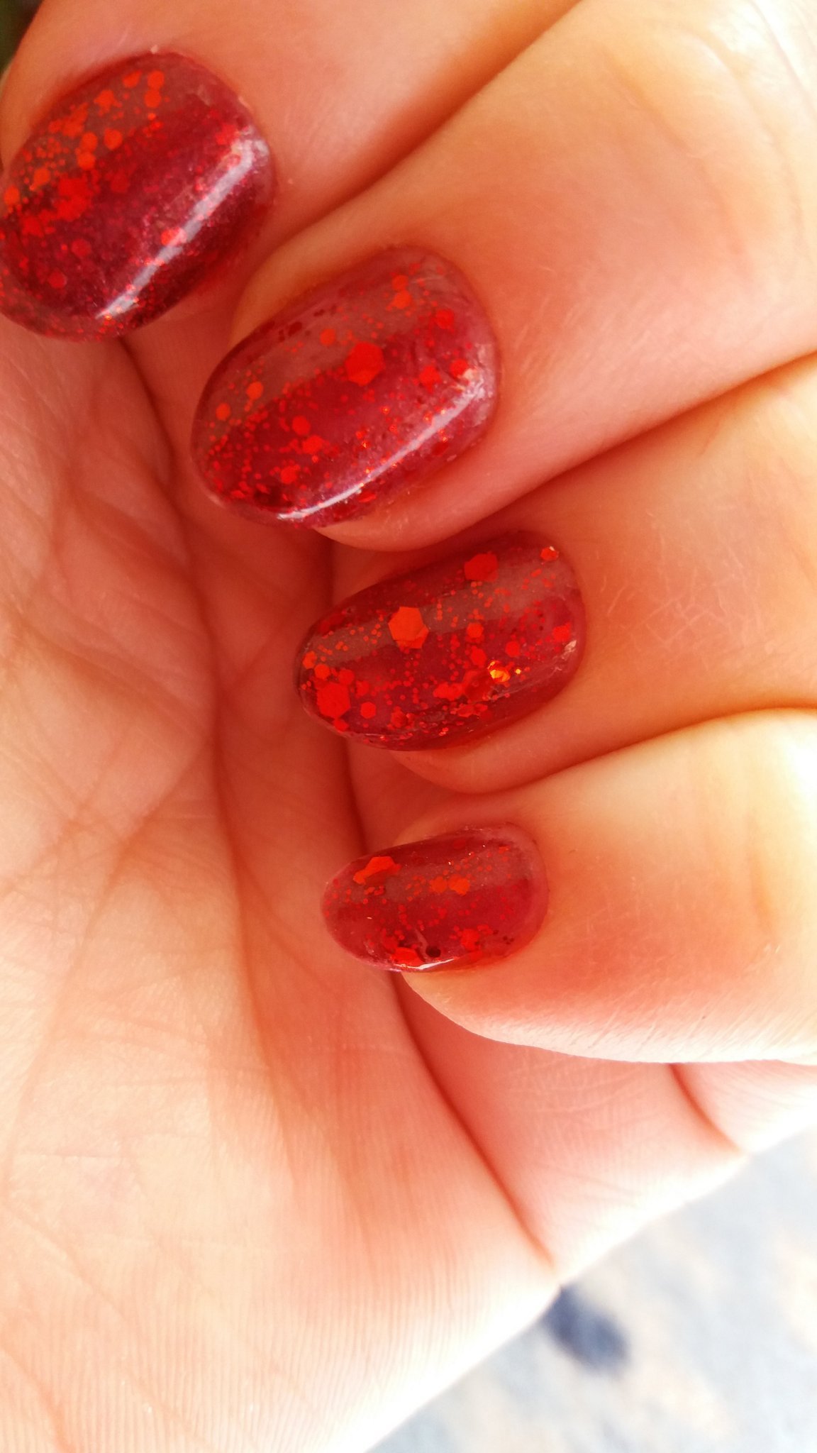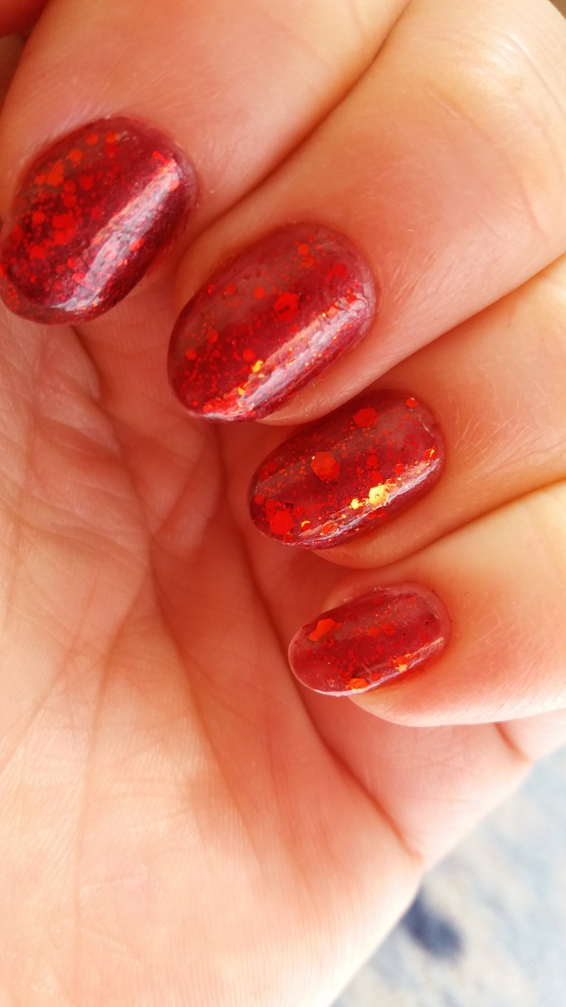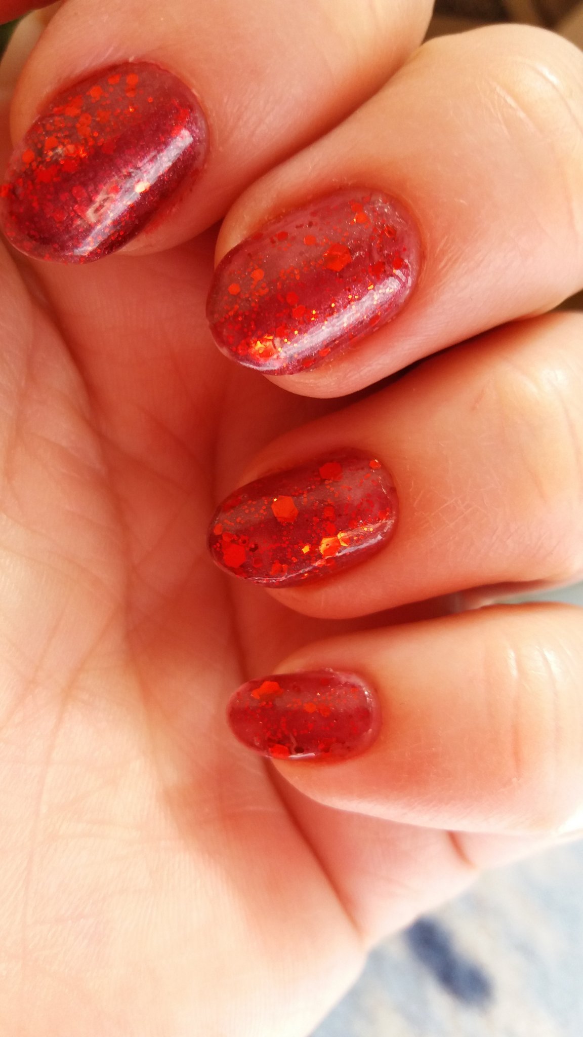 От вчера се мъча да го снимам и не става.Червен лак golden rose и върху него червен брокат(ситен) Perfect.Много блести,но не мога да го хвана. И само какви красоти показвате.Бях се зарекла да не взимам повече лакове.След 2 месеца се си взех 5бр.