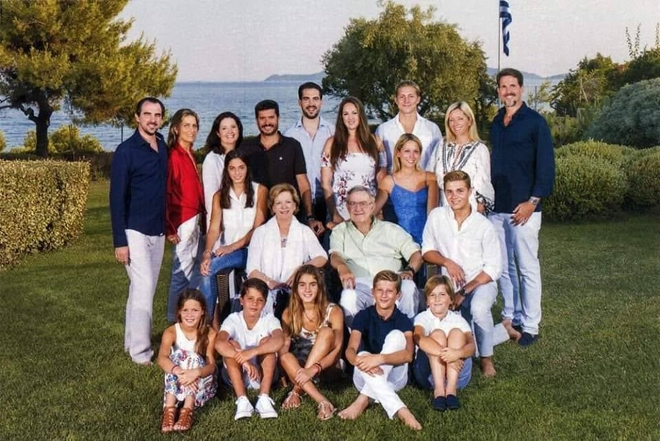Queen Anne Marie, Prince Nikolaos, Princess Theodora and Prince Philippos in Spetses