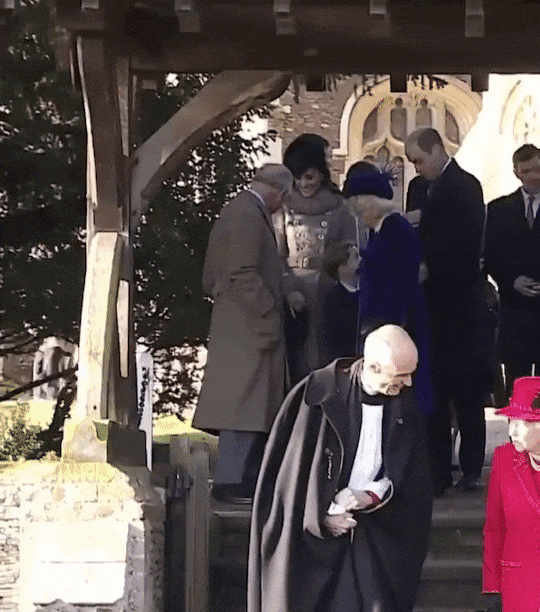 Тук говори нещо на Джордж според мен. Той поглежда напред с зяпнала уста, може да му казва, че после ще ходят при хората да ги поздравят...