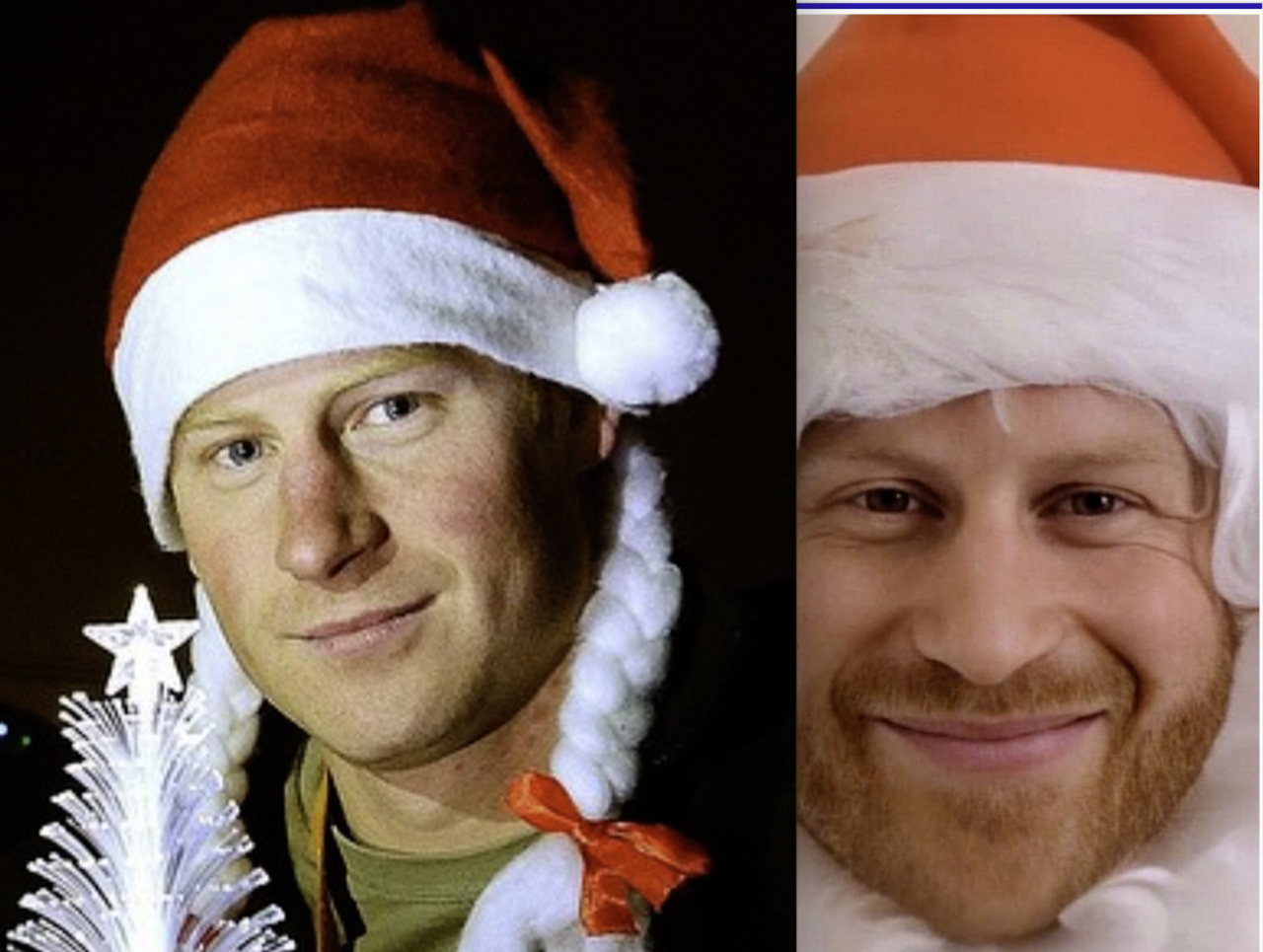 Коледната снимка с Хари, Мегън и Арчи е откровено фотошопиран колаж. Хари е вмъкнат допълнително. На оригиналната снимка са само Арчи и Мегън. Хари е фотошопиран допълнително.