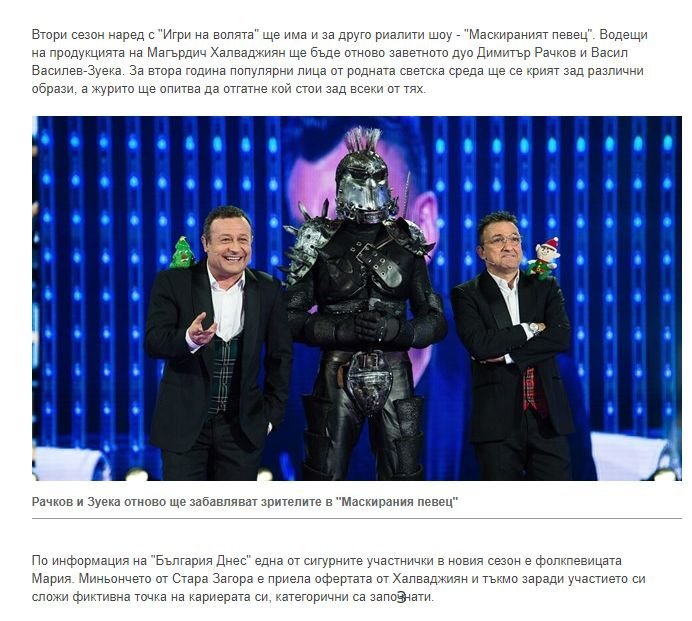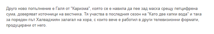 Но то и предишните бяха разкрити набързо. Нямаме голям избор от популярни личности, тъй че лесно се разпознават, но дано поне изберат по-артистични хора, които могат да се преобразяват.