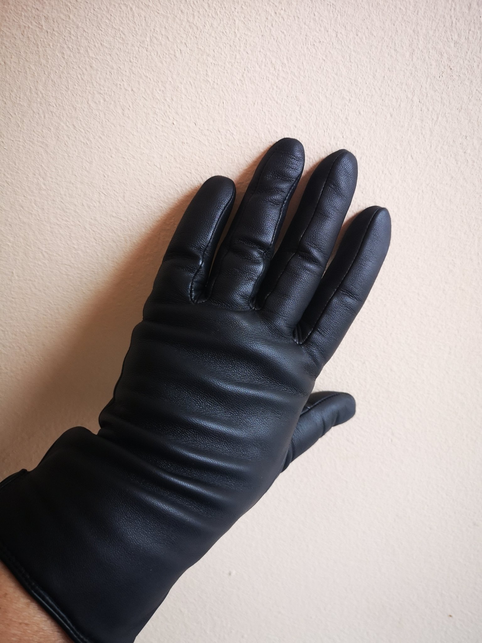 Ама ръка има ли вътре 😊 нито пръсти личат. Дълги и слаби пръсти имаш, добре са ти ръкавичките струва ми се. На мен ми харесва как стои 😉
