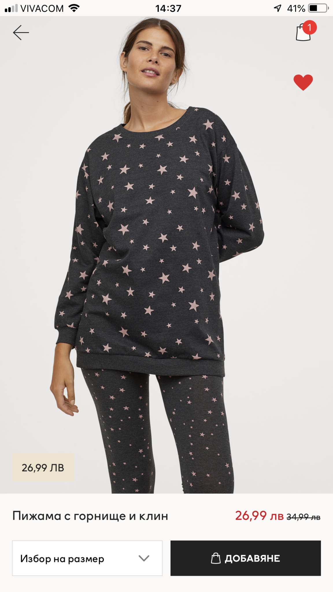 За пижамата - имам такава но с Мики Маус, страхотна е. Горната част е с мека материя от вътре и усещането е много хубаво. Клинчето е удобно, не е дебело. Взех xs, въпреки, че нося s, просто модела предполага, че може и номер по-малък. Дано този цвят да същият като този с Мики.