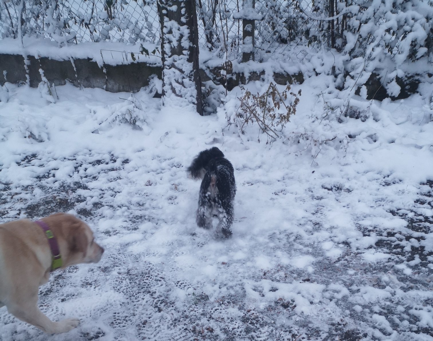 Дупарата е на топки от снега. Така и не успях да намеря непромокаемо яке с крачоли, за да си спестявам размръзяване на вкаменелост след половин час игра в парка.