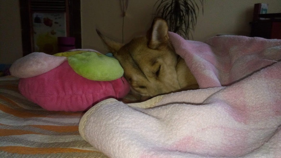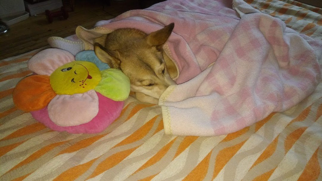 Ей я тука, изкъпана и сресана. И спяща.