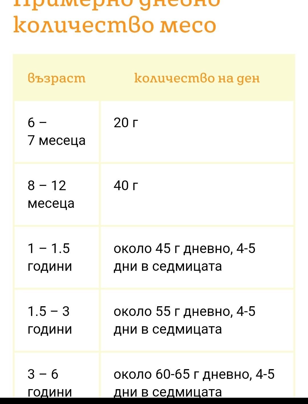 Тези заготовки на месо са да ги смесиш в зеленчуковото пюре, а не да се дава директно месото. Доколкото знам на ден трябва по 30 гр месо, но в тези заготовки има и много вода.
