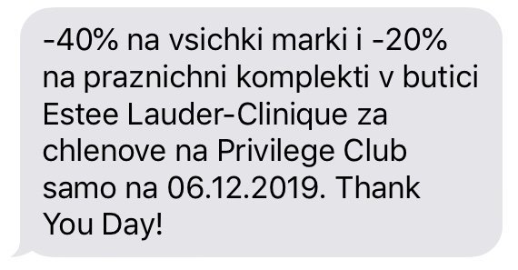 -40 % на всички марки в бутиците на Ести Лаудер и -20% на комплекти на 06.12.2019 г.