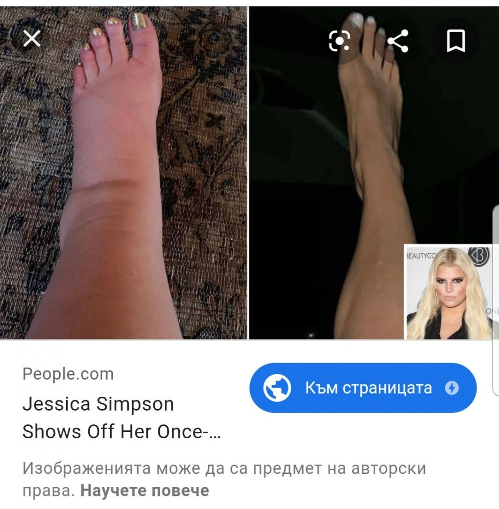 Отоците трябва да се проверят от лекар задължително и ви съветвам да спрете солта. Това е снимка на Джесика Симпсън и отеклият й крак по време на бременност, но гледам че при американките често се случва