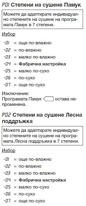 Да моята степен за сушене на памук е настроена на 6 от 7 , както беше фабрично на 4 дори на Екстра сухо не бяха напълно сухи. Това са финни настройки, направете ги и вижте как ще е.