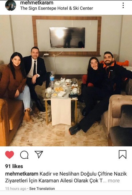 Двойката мъж и жена от снимката са управителите на хотел Sign Esentepe & Ski Centre в Болу. Те са благодарили на Неслихан и Кадир за това, че са били в техния хотел, където да си починат и да покарат ски  Heart Eyes