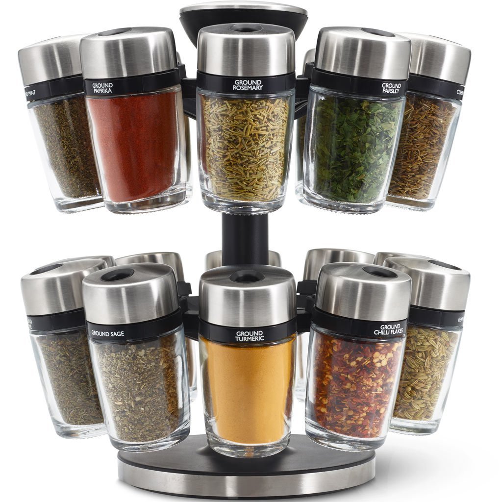 Аз нямам толкова много подправки, но и така "накичени" заемат много място върху плота или в шкафа. Моите са подредени в шкаф. Трябва да си купя от тези разделителчета за шкаф, за да ги наредя на 2 реда. Много неусвоено пространство остава в шкафа.