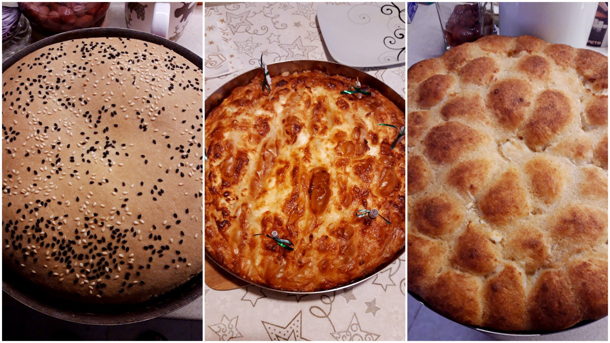 Отново хлебче с грис и бяло брашно; Въздушната ни новогодишна баничка с късмети (парата ми се падна); Вкусни милинки с каймак и сирене