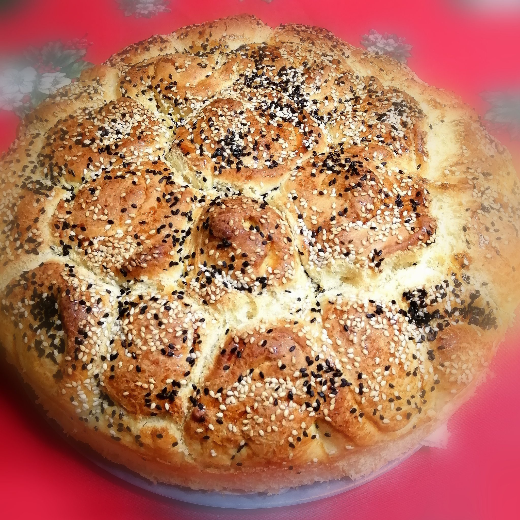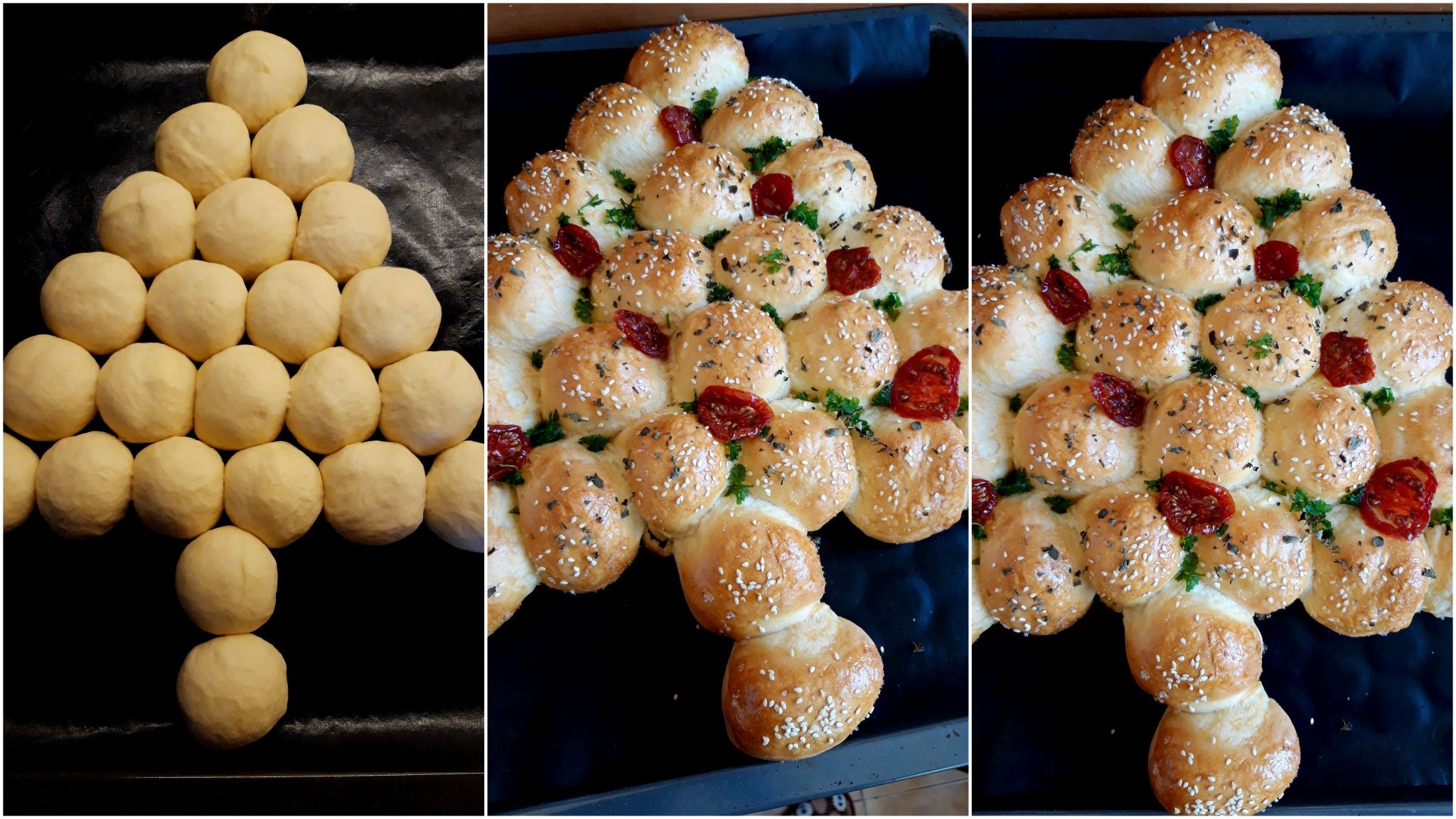 Новогодишната ми питка елхичка, с масло, риган, сусам, магданоз и сушени домати