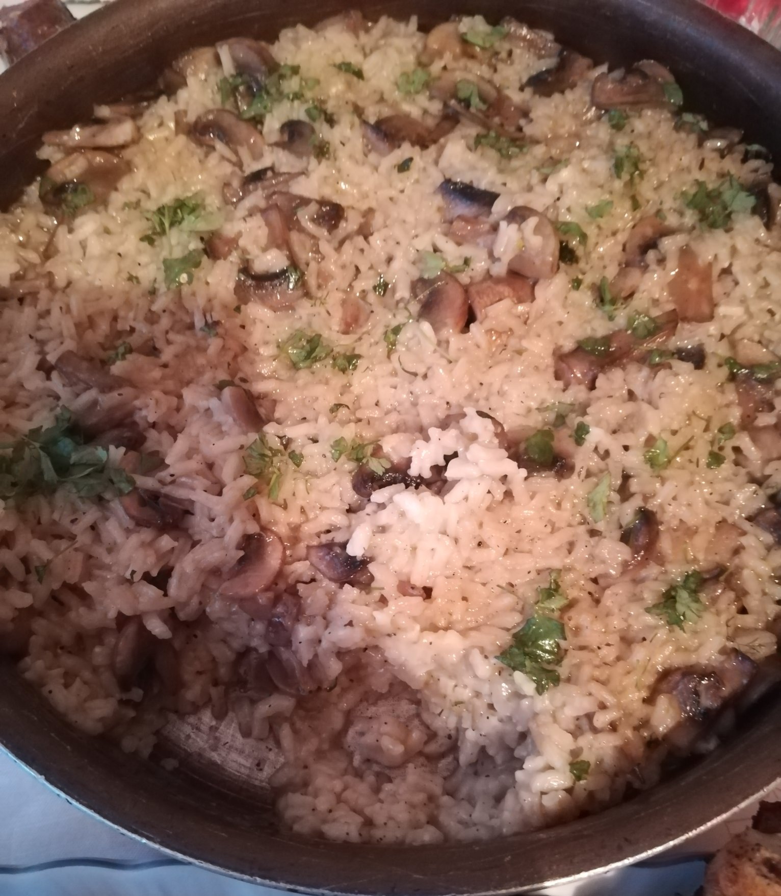 Гъби с ориз, наденички, пържоли, гъбен сос, ребра, баница