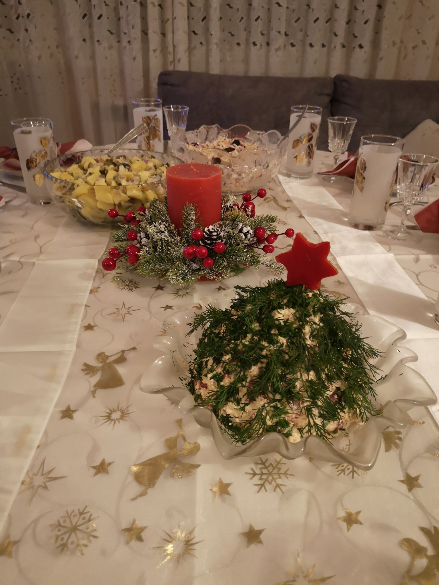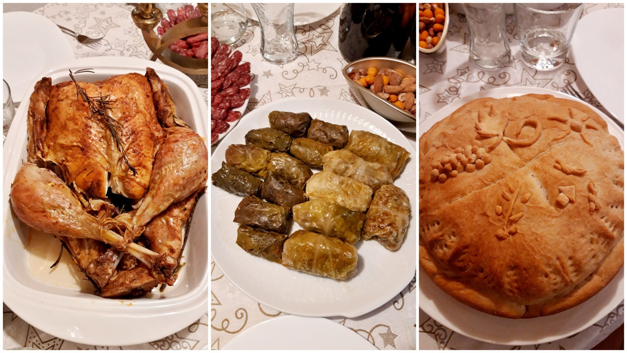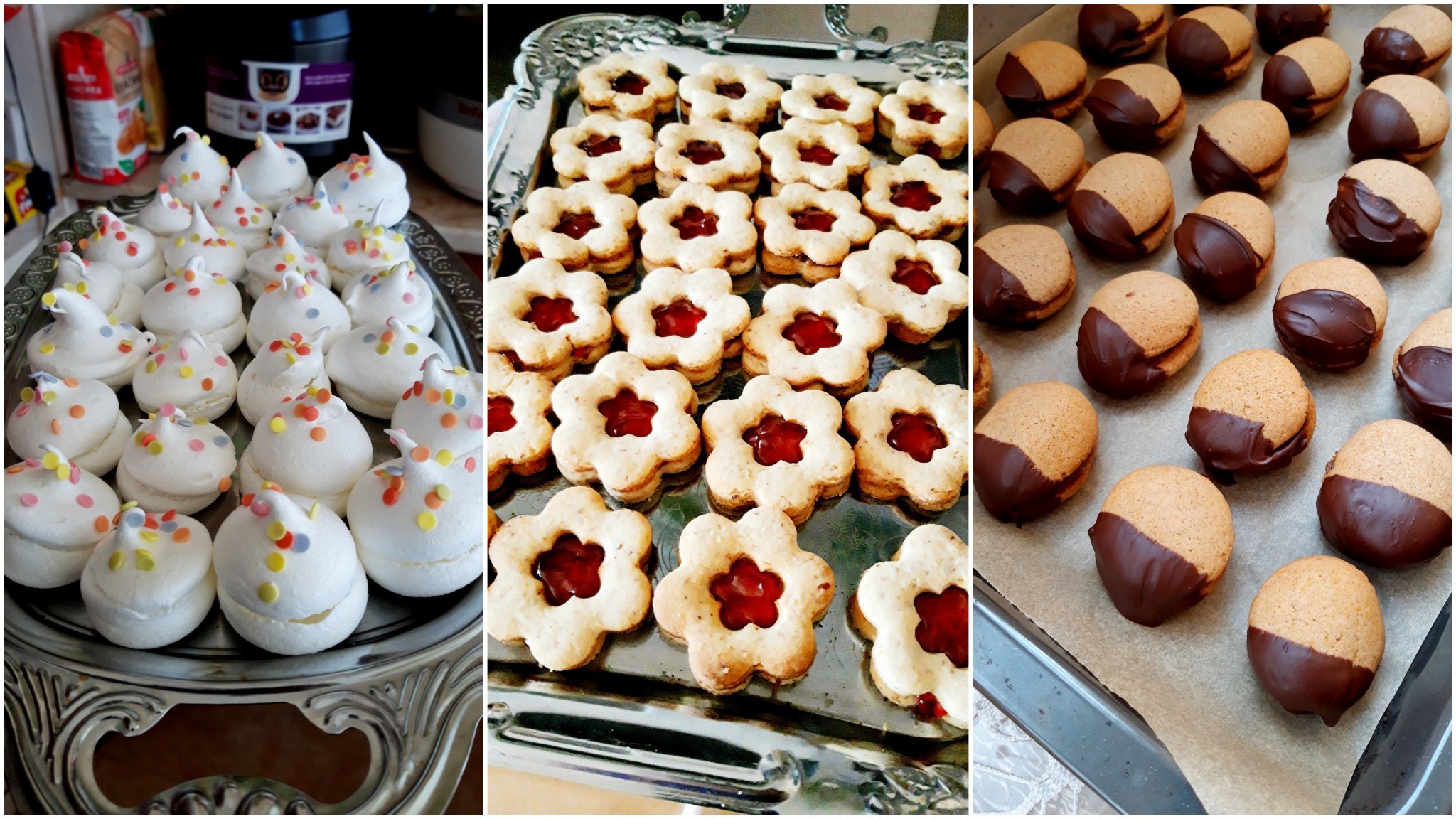 За Коледа се приготвят различни традиционни сладки, включително котлети с винен сос, пуйка с розмарин, вратни пържоли с ориз гарнитура, щруддели елхички с ябълки и тиква, бутерки със сирене и готови тестени изделия , венец от сирена, чери домати, маслини, трапеза за Коледа с пуйка, сармички със зелеви листа и лозови листа с месо, питка със сода и мая , Фереро Роше, торта 'Албена', кейк по стара семейна рецепта, карамелено огледално глазура, баклава, чебурнеки, мраморен кейк и много сушени плодове.