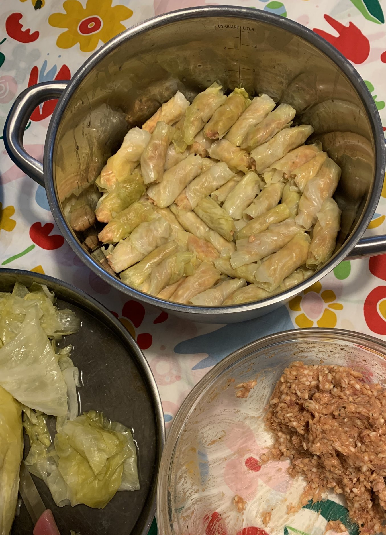 За Коледа се приготвят различни ястия, включително бобец, сарми, питки, салати, пържоли, щрудел, курабийки с джинджифил и канела, рохлички с глазура от меласа и орехи , печени червени чушки със сирене фета и чесън, царевична каша на фурна със сирене чедър, кисело мляко с мед и ядки, коледен сладкиш с меласа и орехи, препечен хляб с маслини и билки, печено пиле с лимон и билки , китайска храна като пържени спагети или ориз със зеленчуци, свинско месо със сладко-кисел сос, китайски пролетни рулца със свинско месо и зеленчуци, домашни бисквити с шоколадови парченца или стафиди, царевична питка и гювечета с заешко и картофи.
