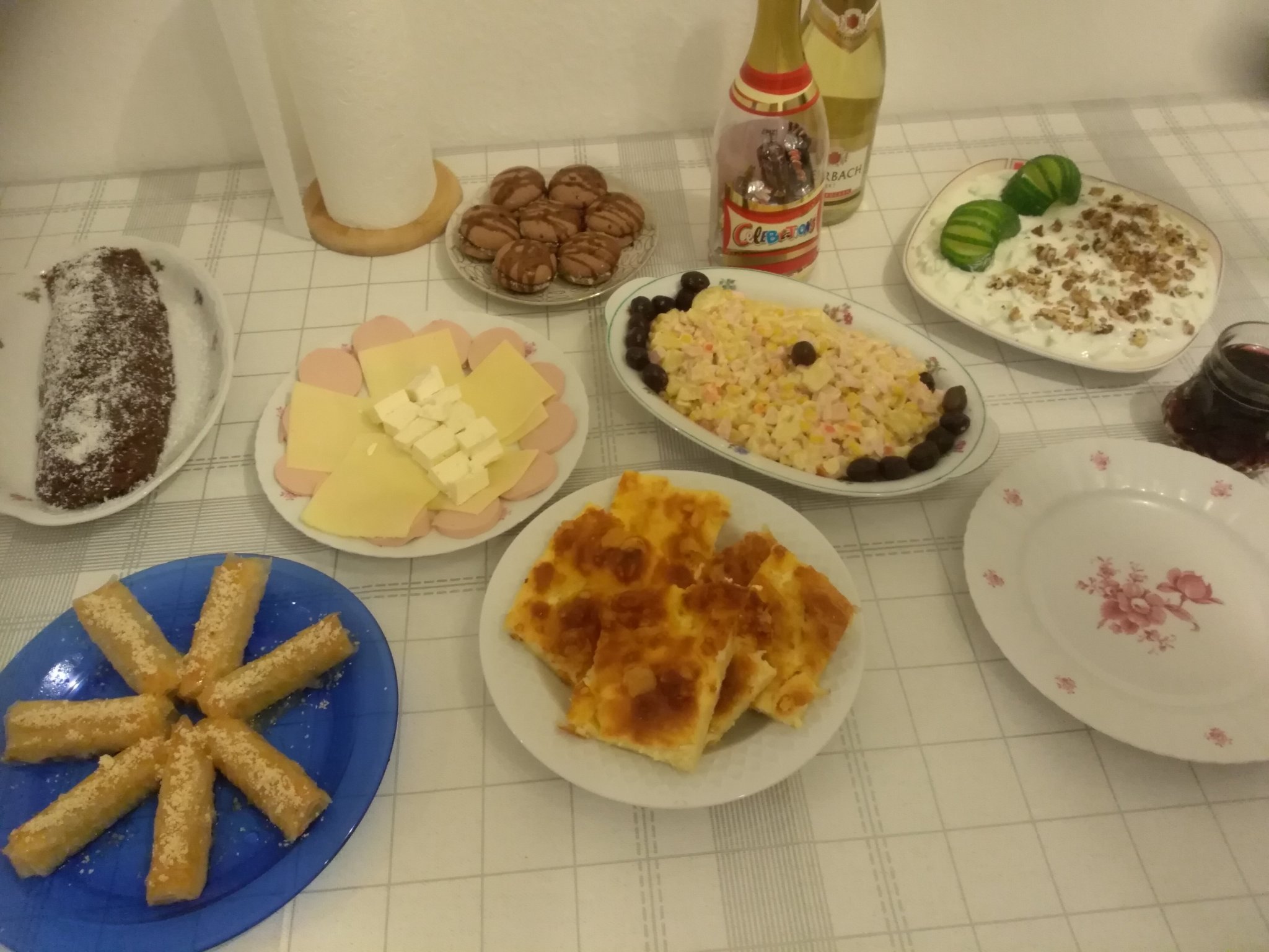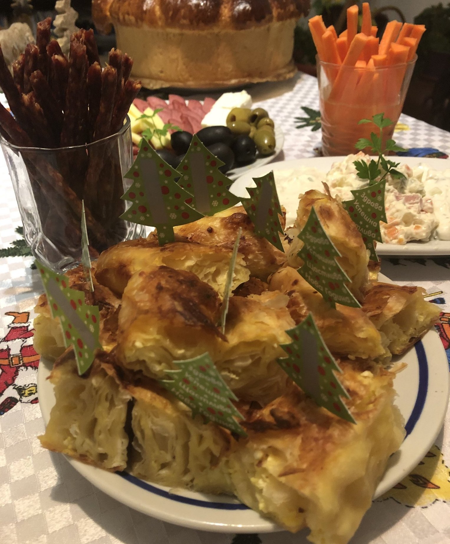 За Коледа се приготвят различни традиционни сладки, включително котлети с винен сос, пуйка с розмарин, вратни пържоли с ориз гарнитура, щруддели елхички с ябълки и тиква, бутерки със сирене и готови тестени изделия , венец от сирена, чери домати, маслини, трапеза за Коледа с пуйка, сармички със зелеви листа и лозови листа с месо, питка със сода и мая , Фереро Роше, торта 'Албена', кейк по стара семейна рецепта, карамелено огледално глазура, баклава, чебурнеки, мраморен кейк и много сушени плодове.