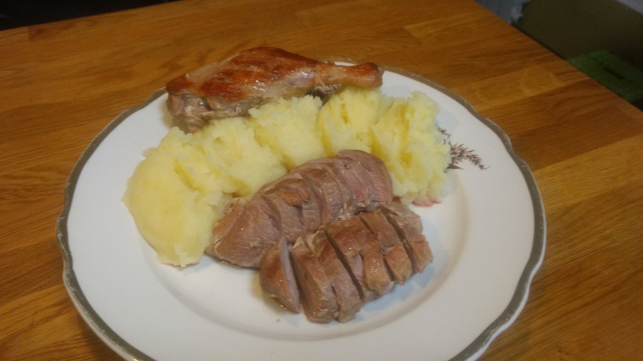 Патешко магре(и едно патешко бутче) с картофено пюре.