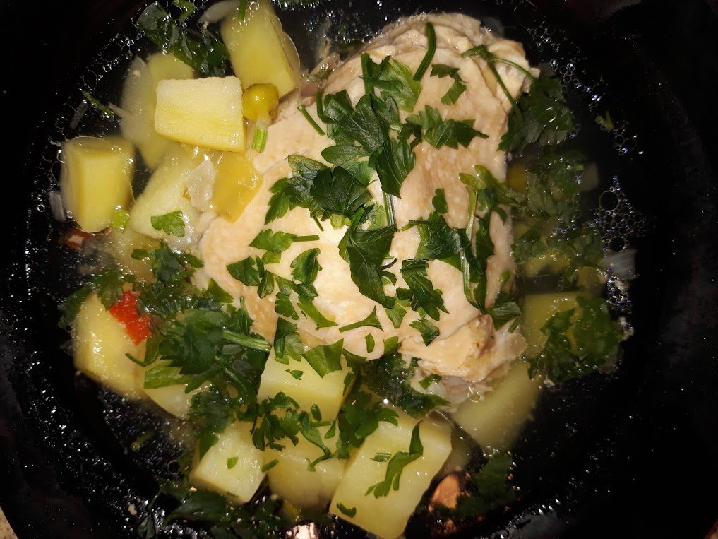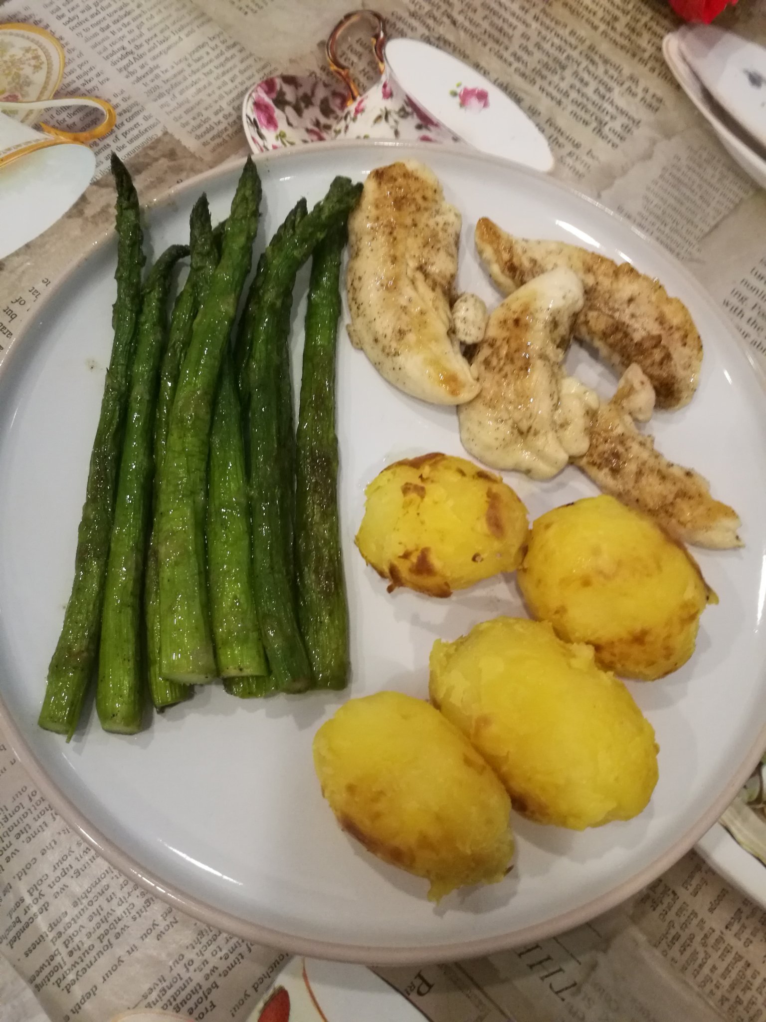 За обяд пилешко филе и аспержи на тиган със гарнитура картофи на фурна. Blush