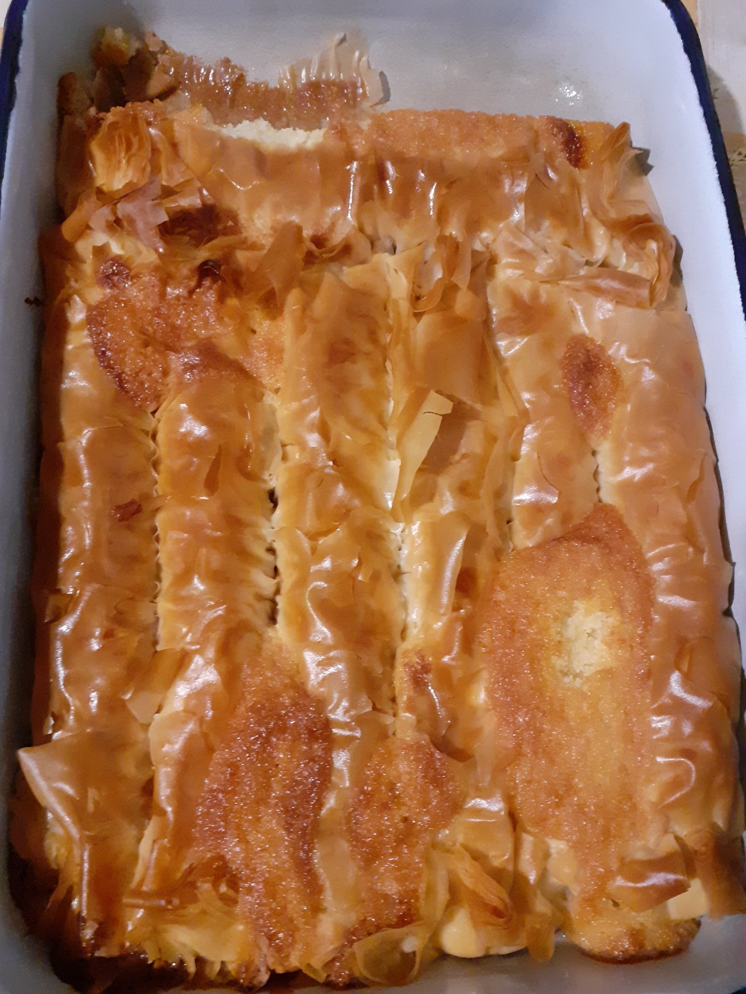 Торта с готови блатове и крем по тази рецепта https://www.youtube.com/watch?v=xHYzm6uukVo