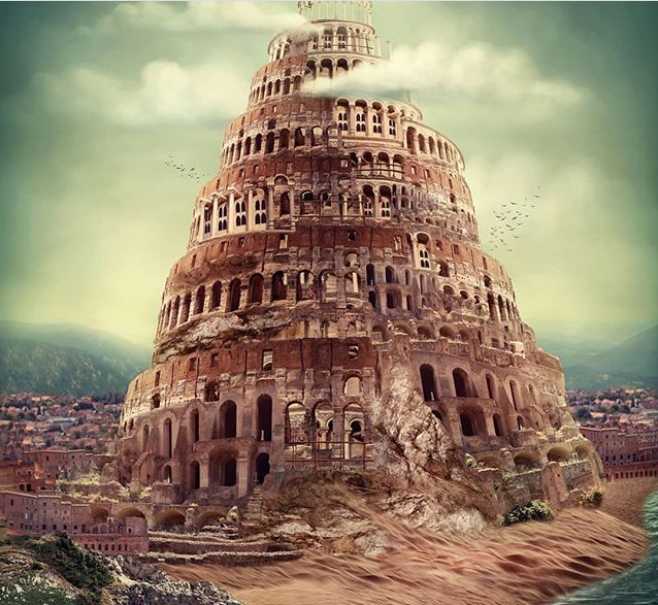 Долу: модерните сгради, които скриват пирамиди; това е бизнесът, подобен вероятно на този на Сюлейман, много пъти камерата в епизодите ни показва в далечината такива сгради с форма на пирамида, а тук са облепени с банкноти и кюлчета злато, за да ни е още по-ясно. Надписът BABIL е направен по същия начин: отпред виждаме черни сериозни букви, но проблясва стоящото зад тях злато. Не всички билдинги са пирамиди и слава Богу! Това ниво е на земята, то е ниско и в пряк, и в преносен смисъл.